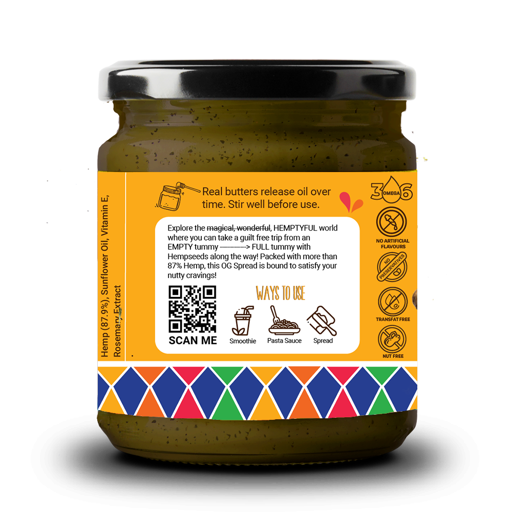 HEMPTYFUL world where you can take a guilt free trip from an EMPTY tummy -------------> FULL tummy with Hempseeds along the way! Packed with more than 87% Hemp, this OG Spread is bound to satisfy your nutty cravings!