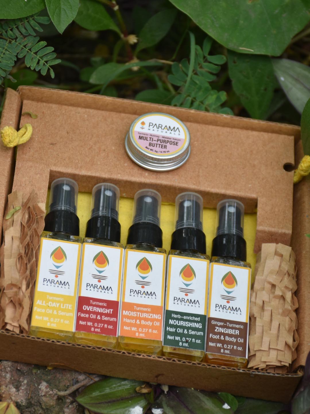 Parama Naturals Turmeric Carry-Along Starter Kit, Winter Moisturizing Face, Body Hair Care Serums.
