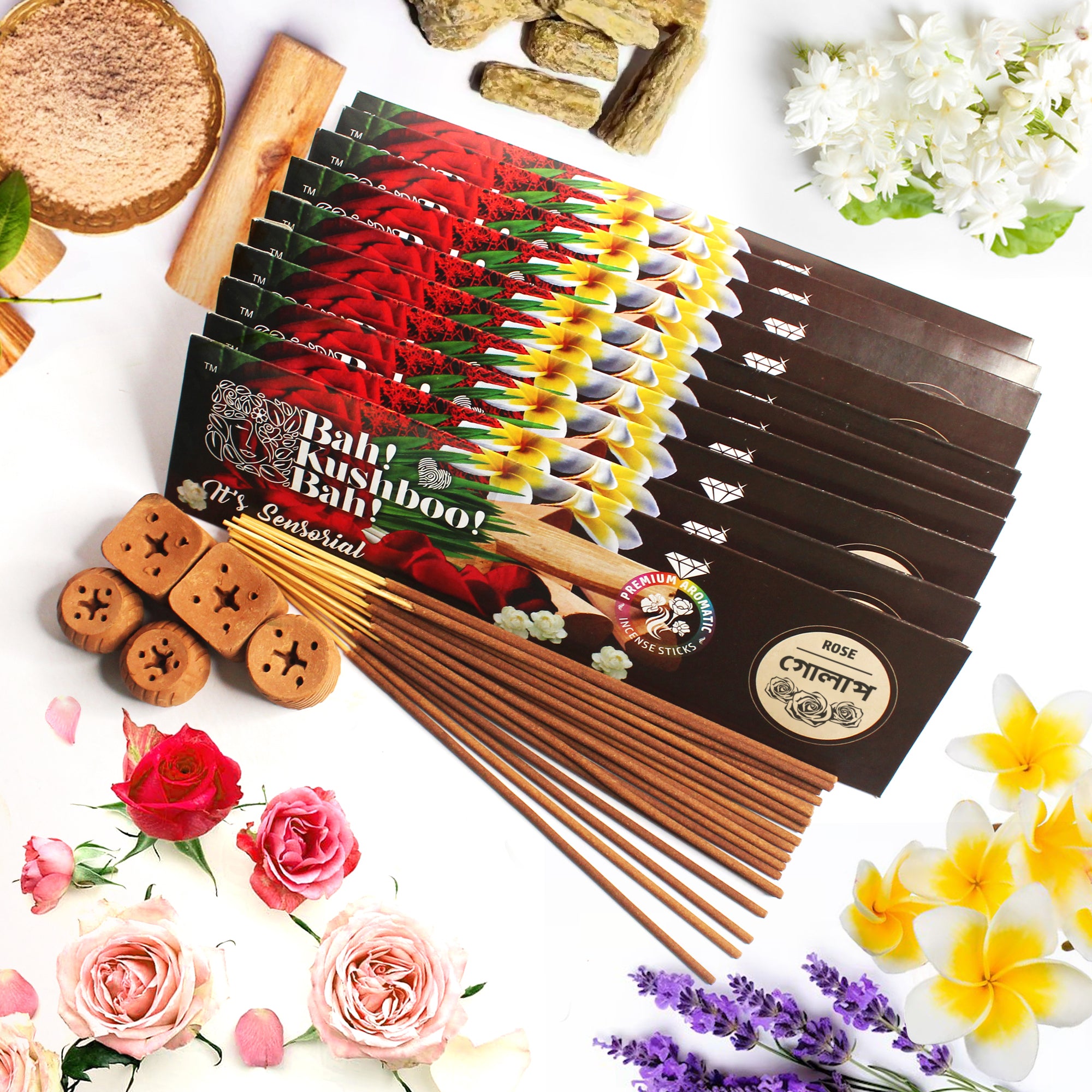"Bah Kushboo Bah" Premium 5 in 1 COMBO Pack Sensorial Aromatic Incense Sticks (10 packs = 500 Grams Sticks)