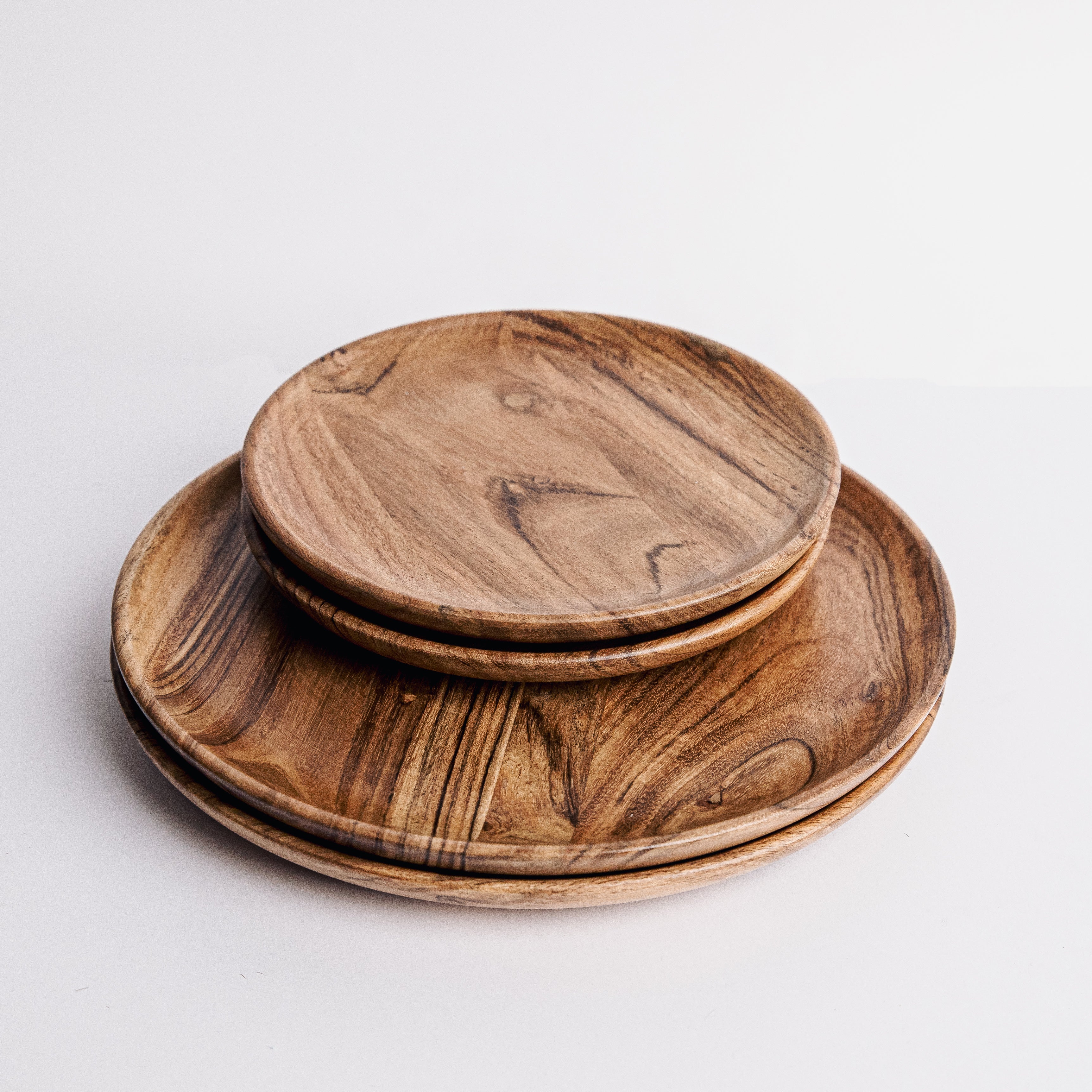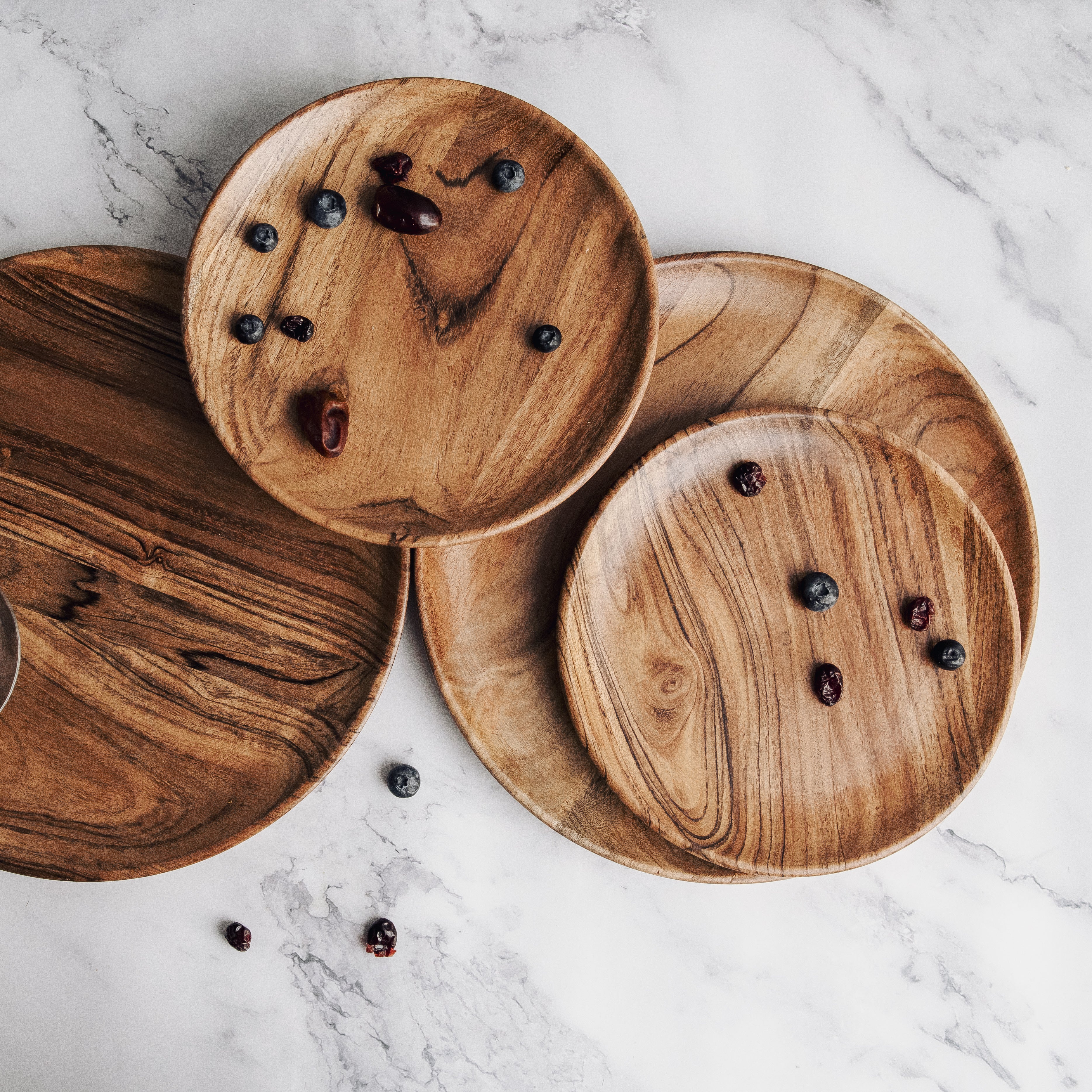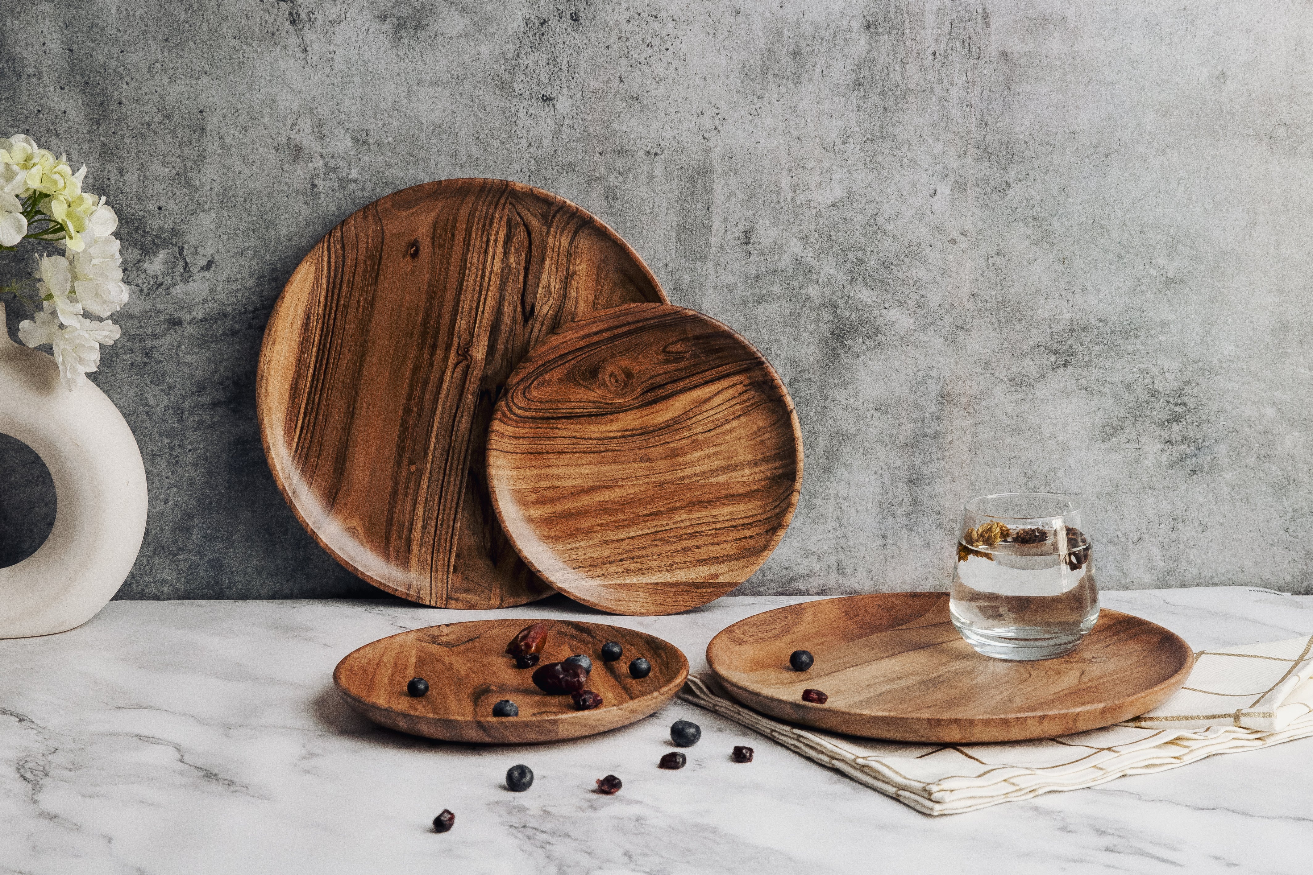 Ans High-quality wooden platters are typically made from durable hardwoods like acacia, teak, or oak. These woods are chosen for their strength, resistance to moisture, and beautiful grain patterns, making them both functional and aesthetically pleasing.