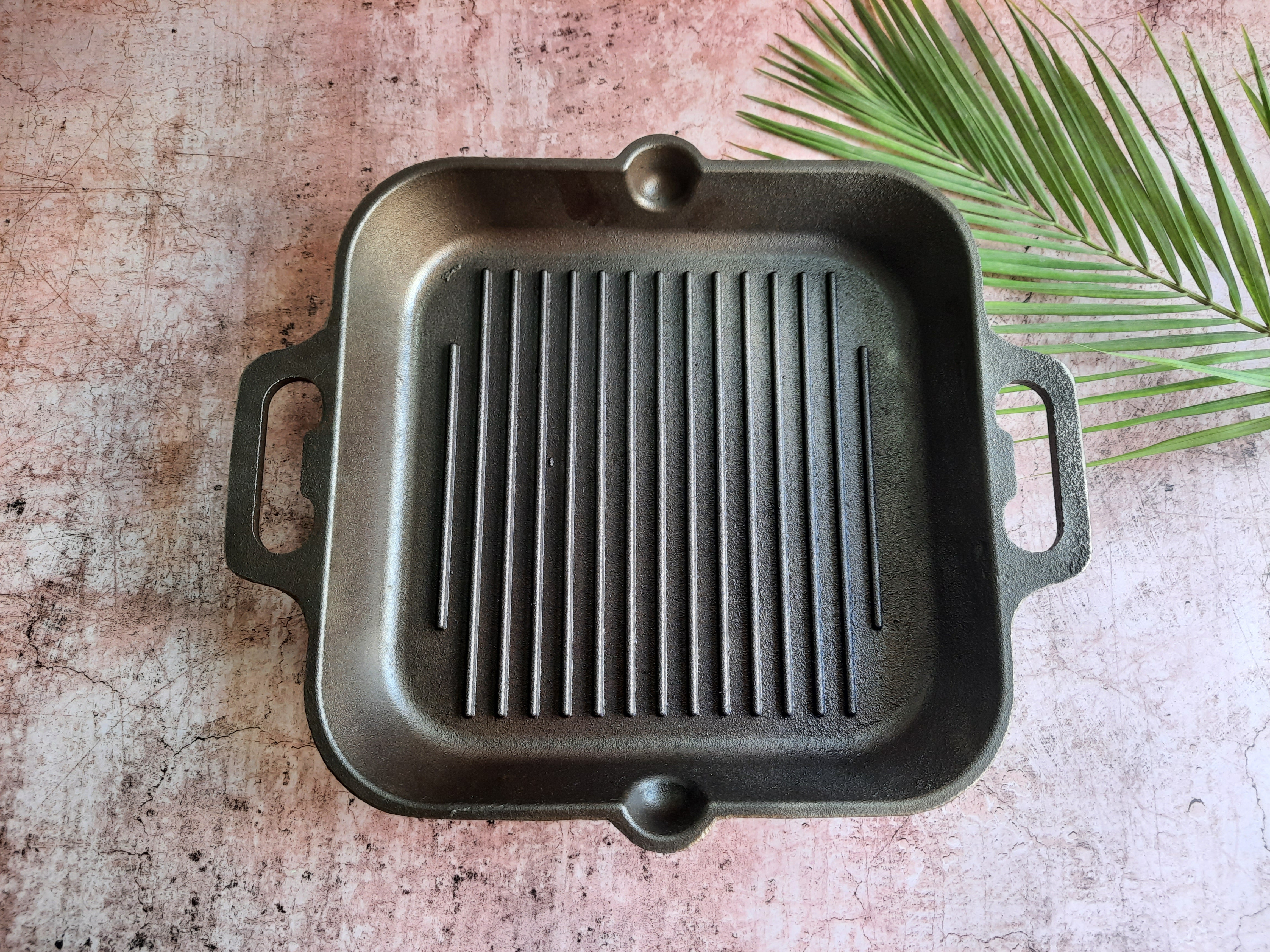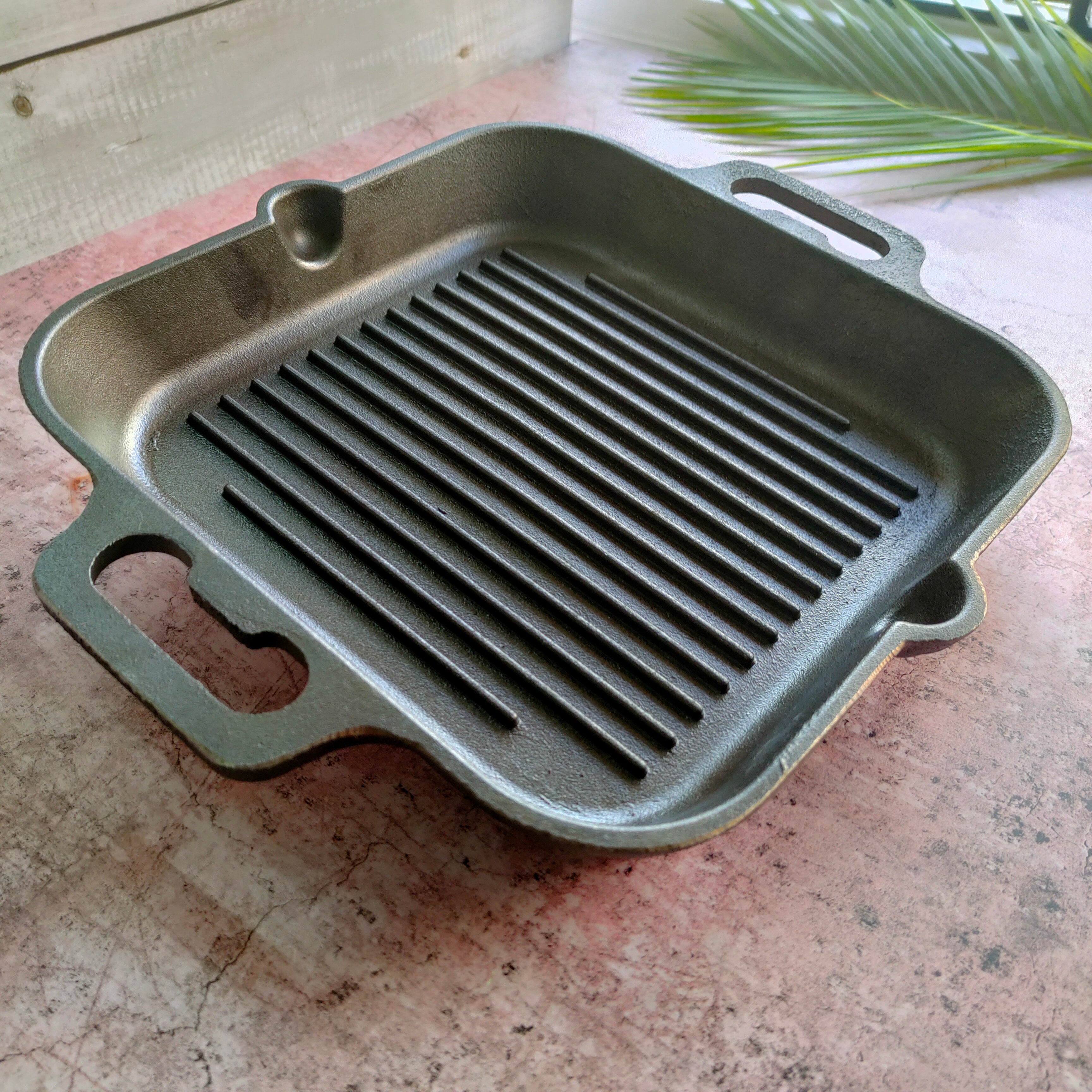 Introducing our premium Cast Iron Grill Pan—hand-seasoned by skilled artisans with natural vegetable oils, this grill pan ensures optimal performance and care. Crafted from eco-friendly materials and offering excellent ease of release, it's perfect for grilling paneer, tofu, breads, chicken, fish, tikkas, bell peppers, and sandwiches. Embrace sustainable cooking with this durable, artisan-crafted cast iron grill pan, enhancing your dishes effortlessly.
