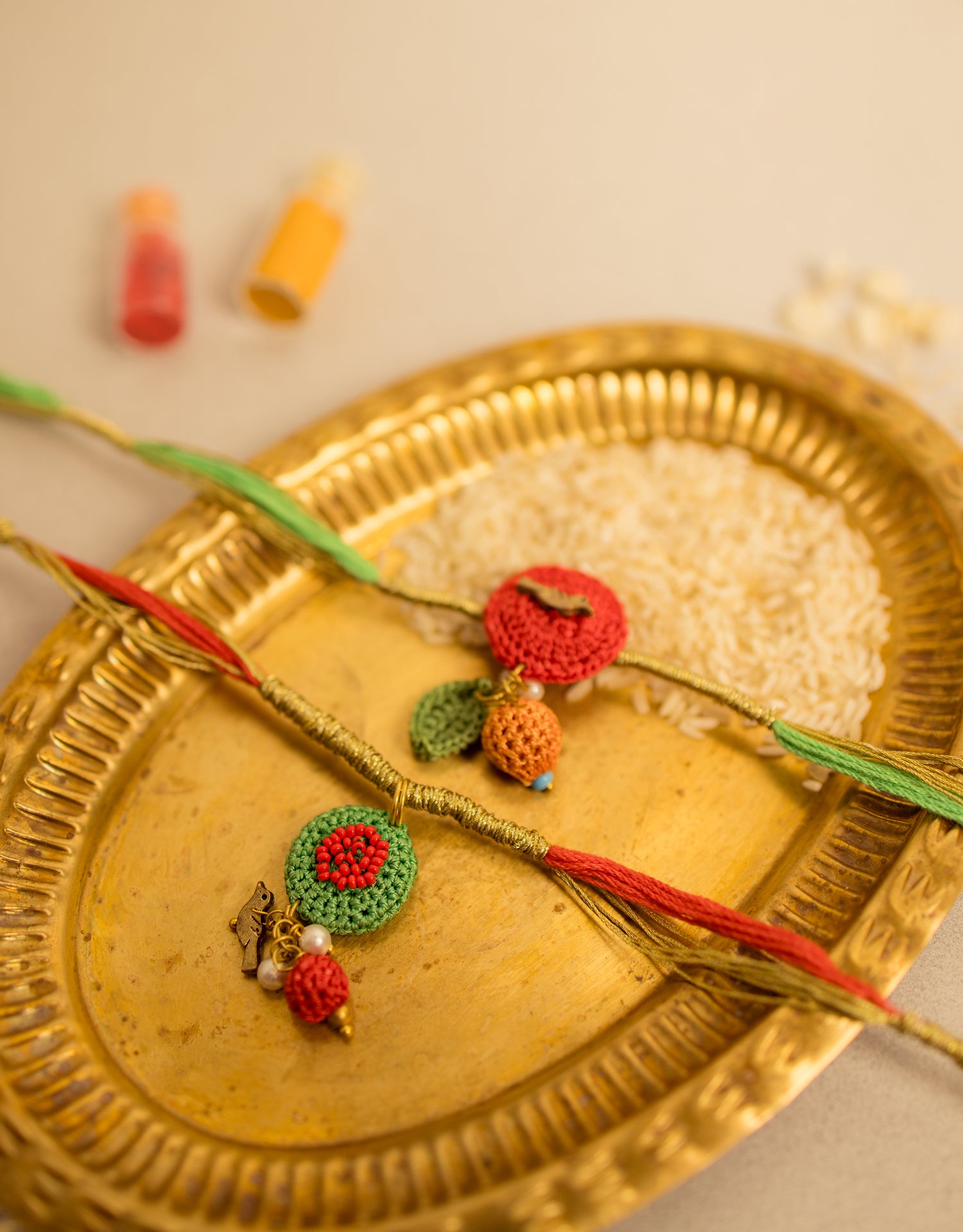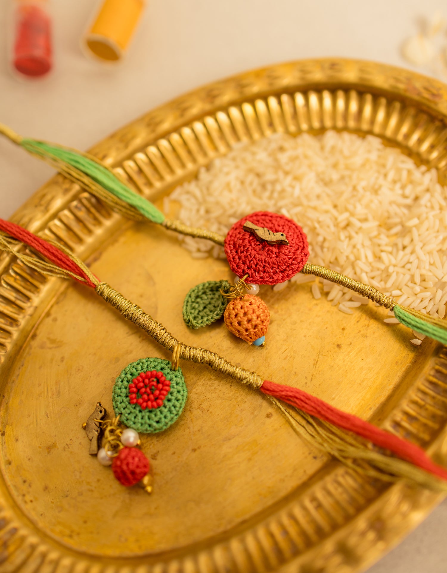 We value bonds that stand the test of time and distance. Celebrate a day of love that you share with your loved ones, with a range of our vibrant recyclable crochet Rakhis. Handcrafted by women artisans of Gaya, our Rakhi’s are made with a lot of love and care for you and the environment. Packed in a handcrafted pouch with kumkum, rice, and sweets, this set is ready to gift. Add a custom message to share your love in your own words.