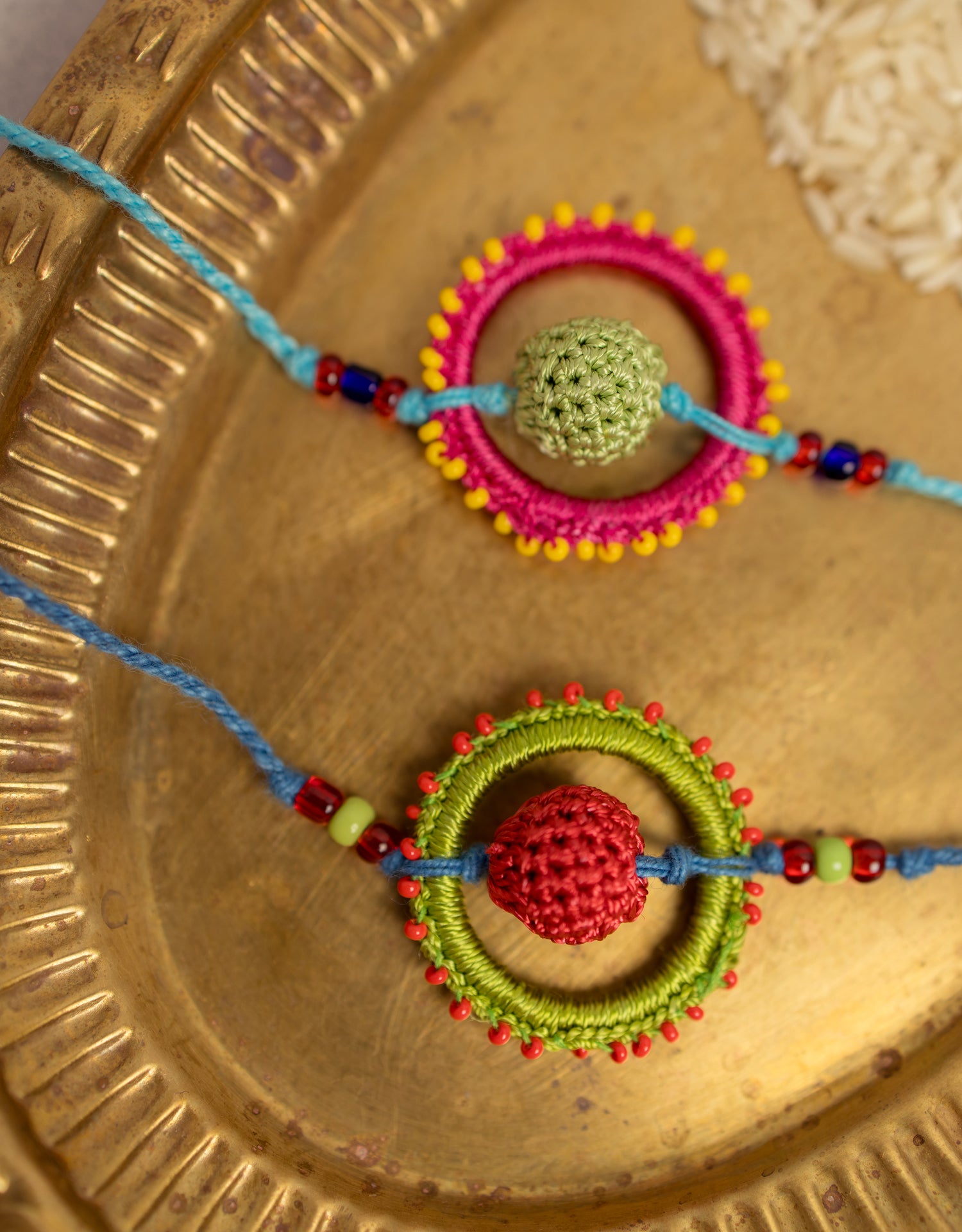 We value bonds that stand the test of time and distance. Celebrate a day of love that you share with your loved ones, with a range of our vibrant recyclable crochet Rakhis. Handcrafted by women artisans of Gaya, our Rakhi’s are made with a lot of love and care for you and the environment. Packed in a handcrafted pouch with kumkum, rice, and sweets, this set is ready to gift. Add a custom message to share your love in your own words.