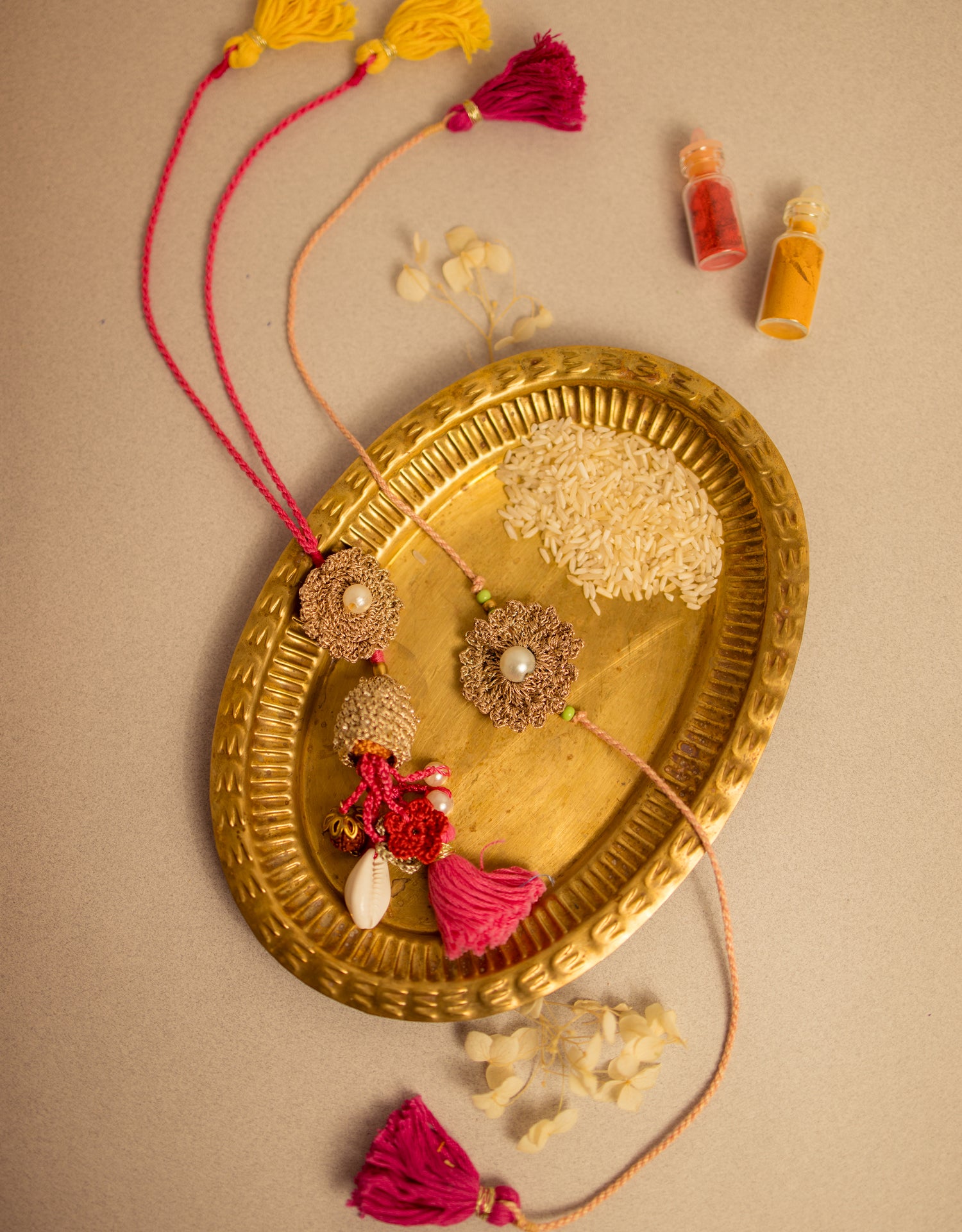 Rakhi & Lumba Set Gulabi Jhalar (Set of 2)