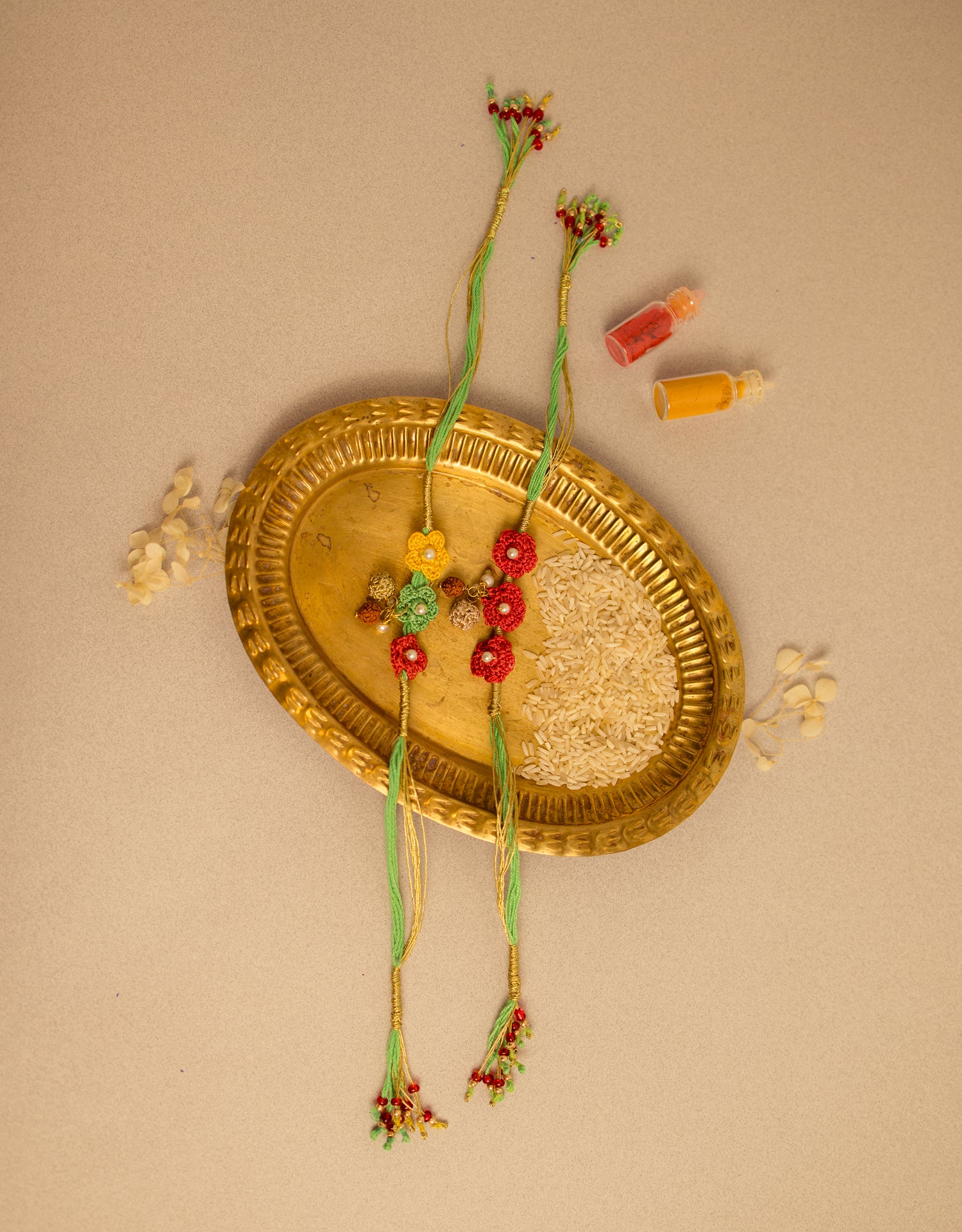 We value bonds that stand the test of time and distance. Celebrate a day of love that you share with your loved ones, with a range of our vibrant recyclable crochet Rakhis. Handcrafted by women artisans of Gaya, our Rakhi’s are made with a lot of love and care for you and the environment. Packed in a handcrafted pouch with kumkum, rice, and sweets, this set is ready to gift. Add a custom message to share your love in your own words.