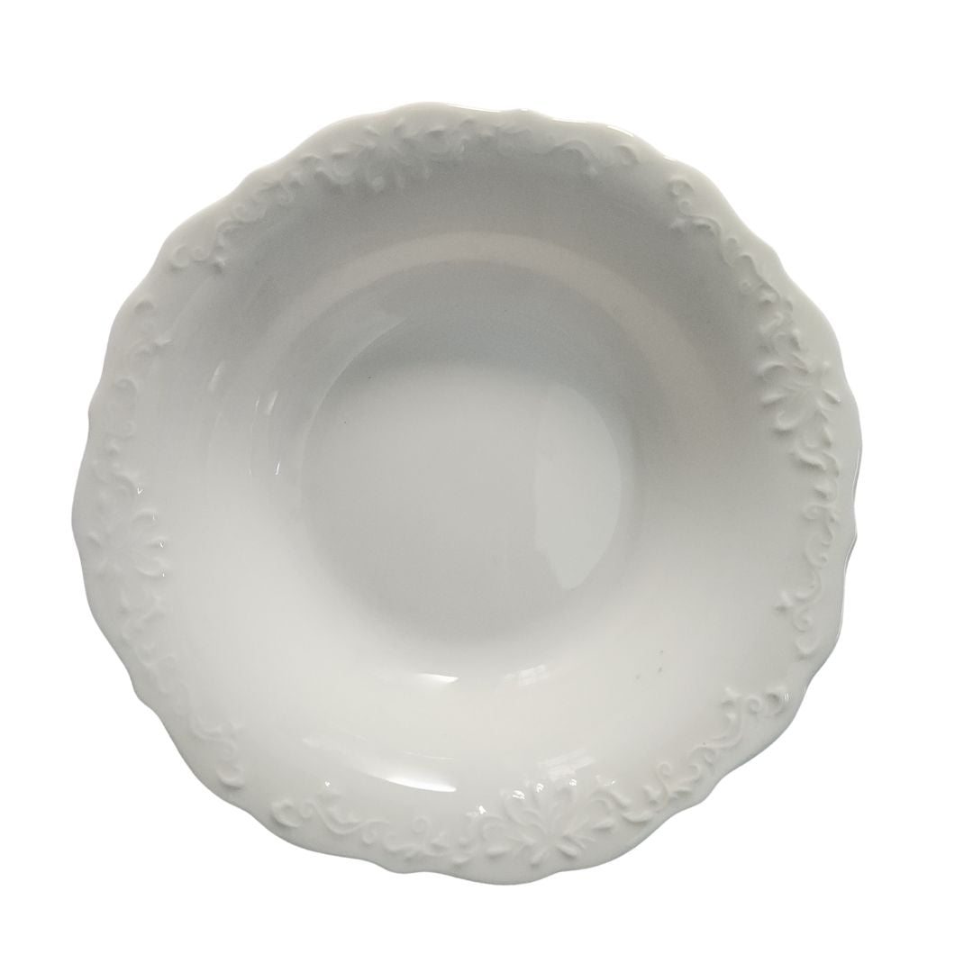 Experience the perfect blend of style and functionality with the Christina Oliver Soup Bowl Set. Each bowl, crafted from premium white porcelain, making it ideal for serving soups, stews, or salads. Adorned with an elegant embossed floral pattern, these bowls add a sophisticated touch to your dining table.