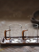 Give your beverage experience a boost by opting for this beautiful Agaja Cup set by Courtyard. It contains a set of two cups and a wooden tray. The set is hand-crafted with precision using borosilicate glass and wood and imparts a smooth finished look that is sure to catch your fancy.