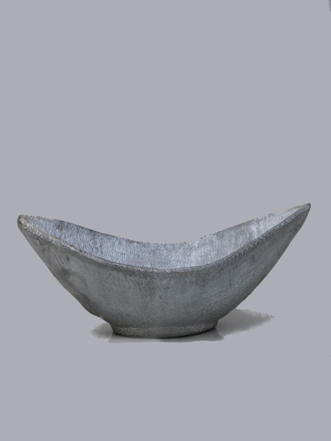 Hand Chiselled Aluminum Boat Shape Bowl.