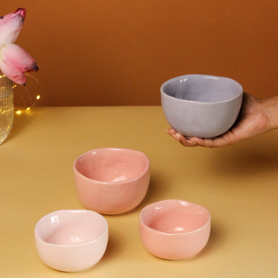 Sitting pretty in your festive table setting, add these stunning bowls to your dining set to elevate your feasting experience. As you host friends and family on Diwali, serve small portions of food in these beautifully handcrafted bowls available in pretty hues. A minimalist and modern setup exudes an aura of grace and uniqueness to your celebratory decor.