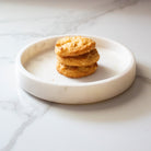 This taper serving platter is here to serve all your side needs. Whether you’re looking for Snacks, Sides, or Starters, this platter has you covered. Cookies, Cakes, Muffins, Pastries, Fruits, Sweets, Snacks, Finger Foods, anything, and everything can be set out on this elegant marble side serving tray cum platter!
