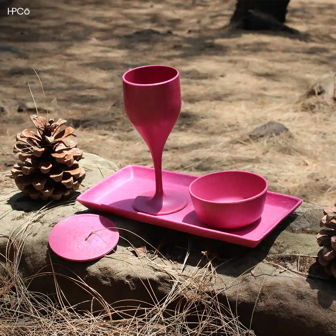 Wabi Sabi –Tray, Wine Glass, Curry Bowl and Coaster set Pink