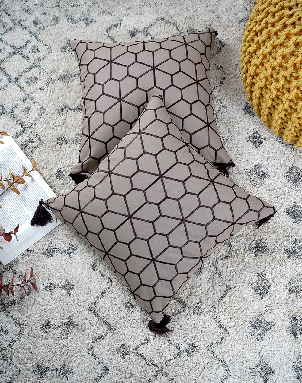 Light Brown Cotton Geometric Pattern 16x16 Inch Cushion Cover Set Of 2