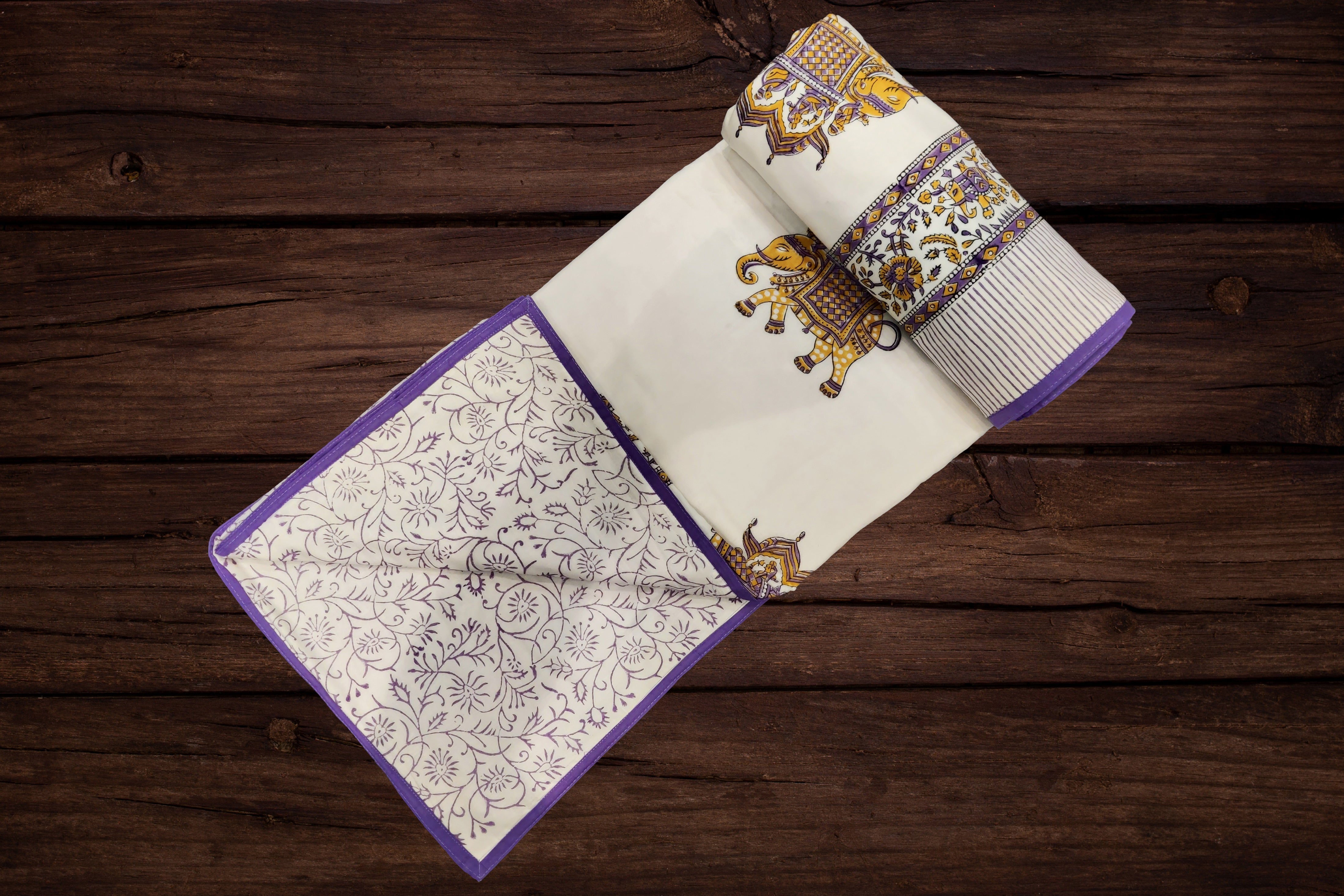 Cotton Blanket - Single Dohar ( 60 x 90 Inches) Orange Purple Elephant
