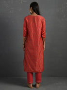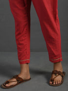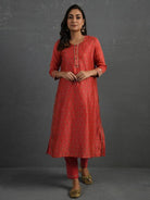 Pink Block Printed Handwoven Chanderi Kurta with Mul Slip & Pants (Set of 3)
