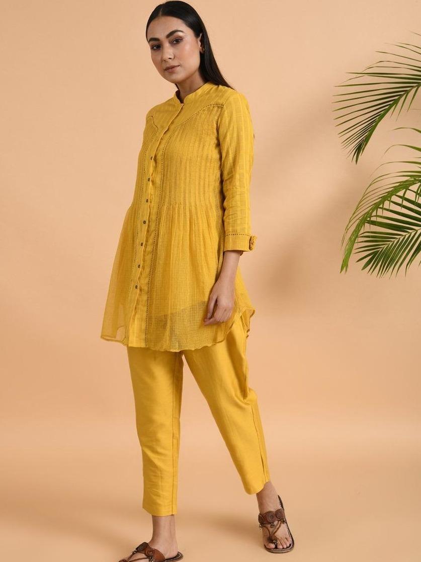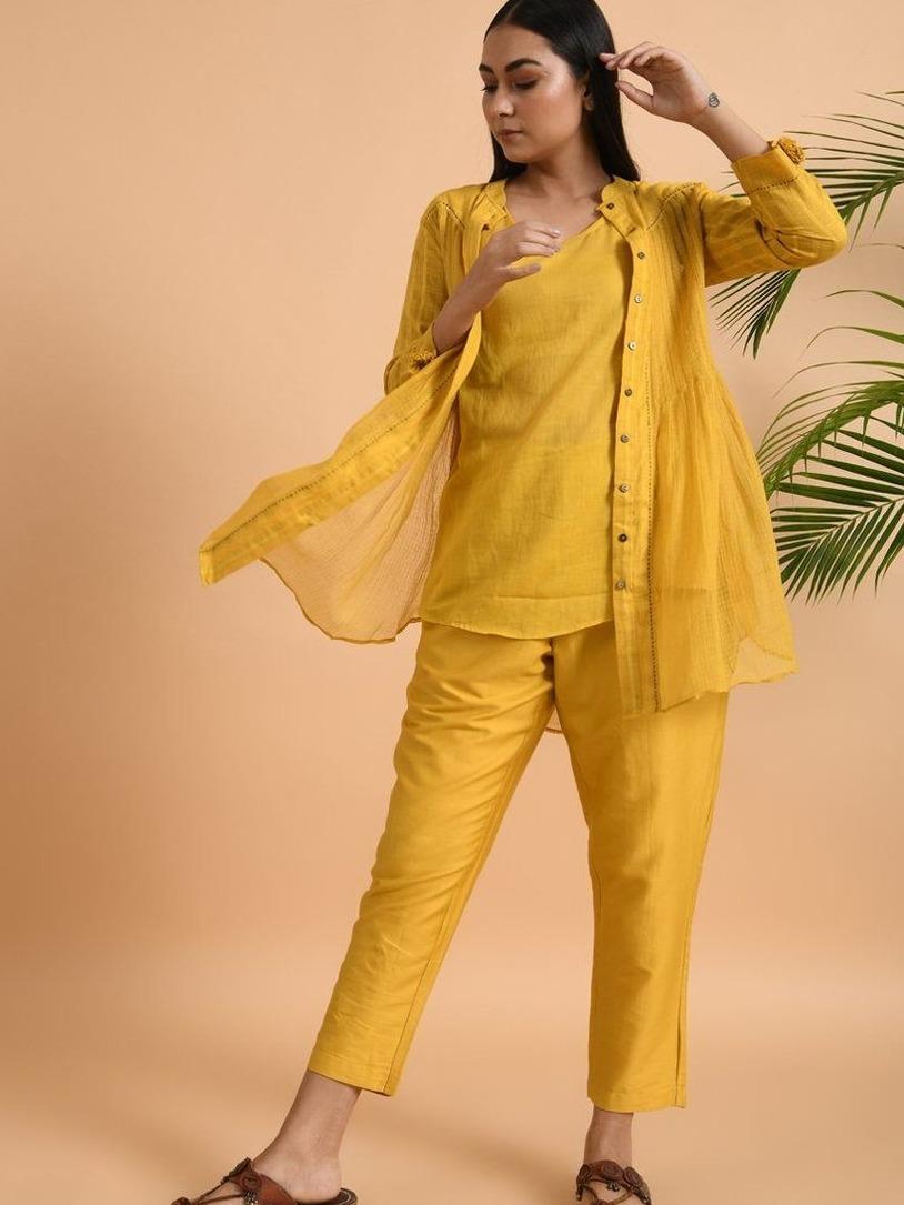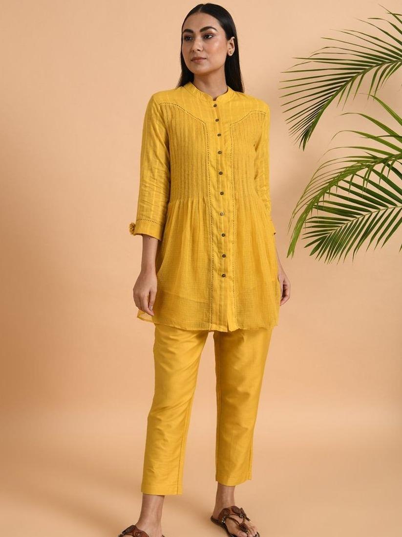 Yellow Cotton Dobby Shirt with Slip (Set of 2)