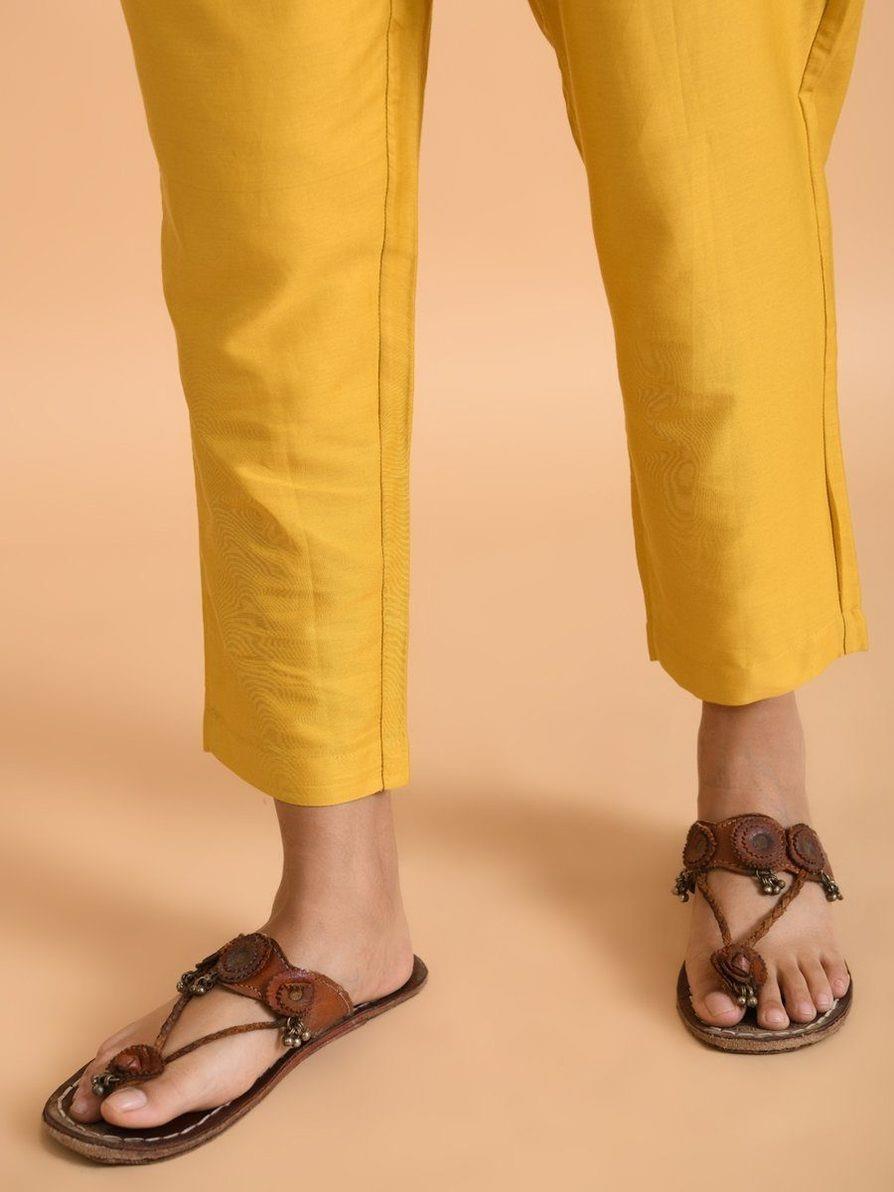 Cotton silk pants comes with side pockets and elasticated waist band.