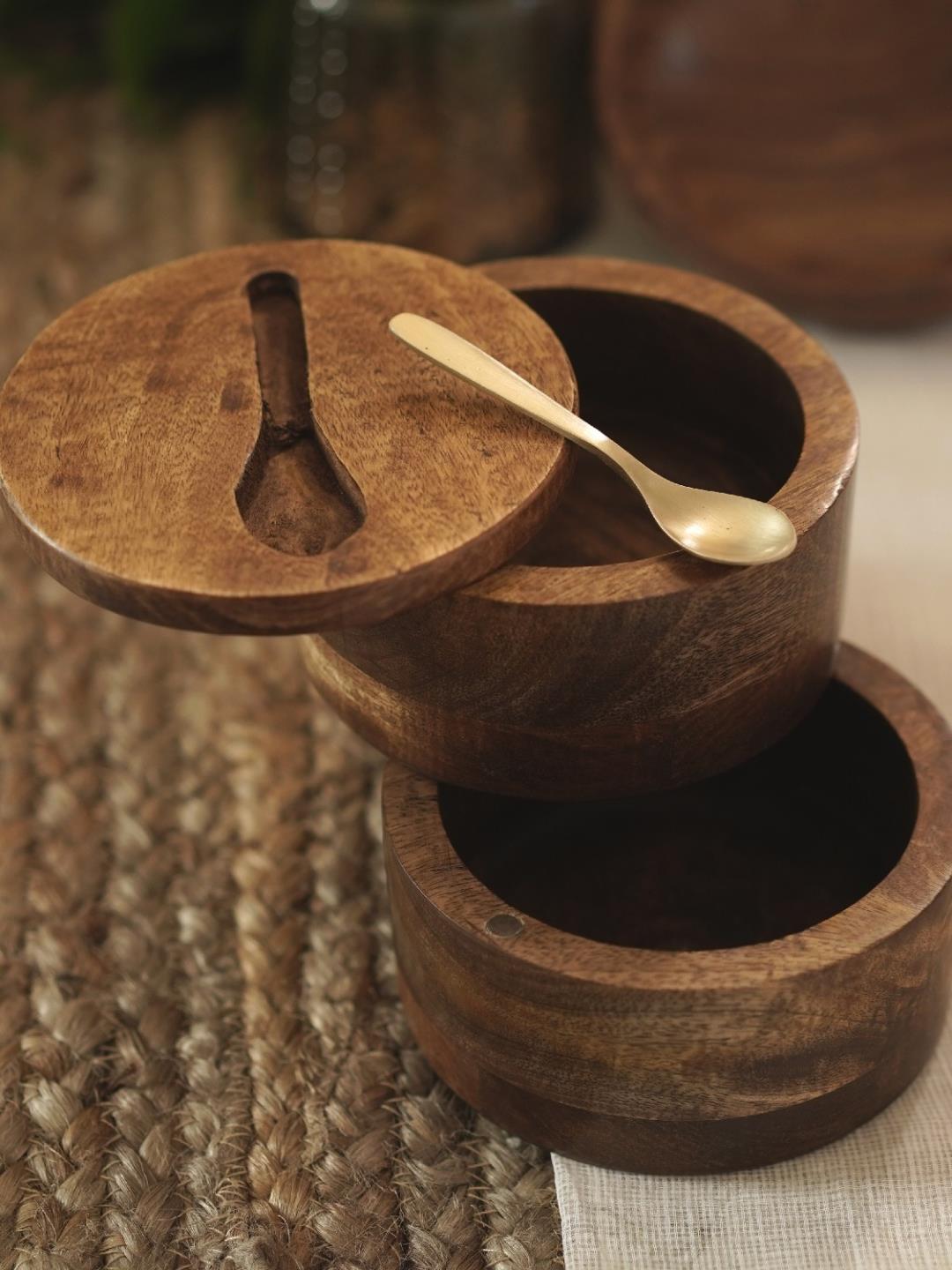 Courtyard Agaja Swivel 2 Tier Container With Embedded Brass Spoon