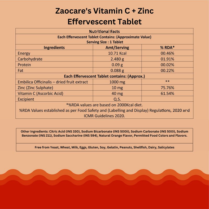 Zaocare Vitamin C & Zinc Effervescent Tablets For Glowing Skin
