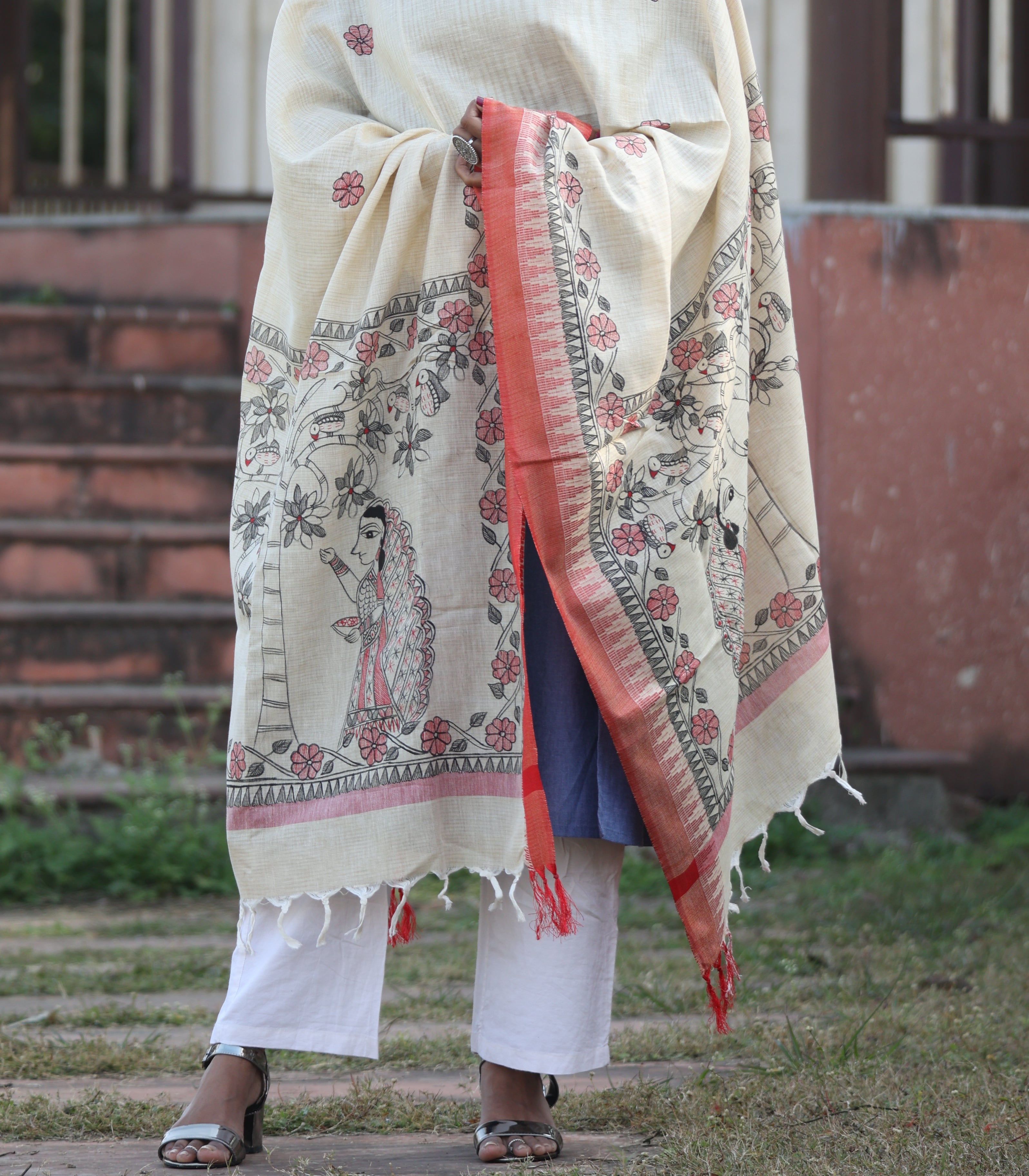 Handloom stoles are crafted using traditional weaving techniques, offering unique patterns and textures that machine-made fabrics can't replicate. They are breathable, comfortable, and often made from natural fibers, making them eco-friendly. Wearing handloom supports artisans and preserves cultural heritage, adding both style and substance to your wardrobe.