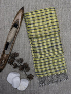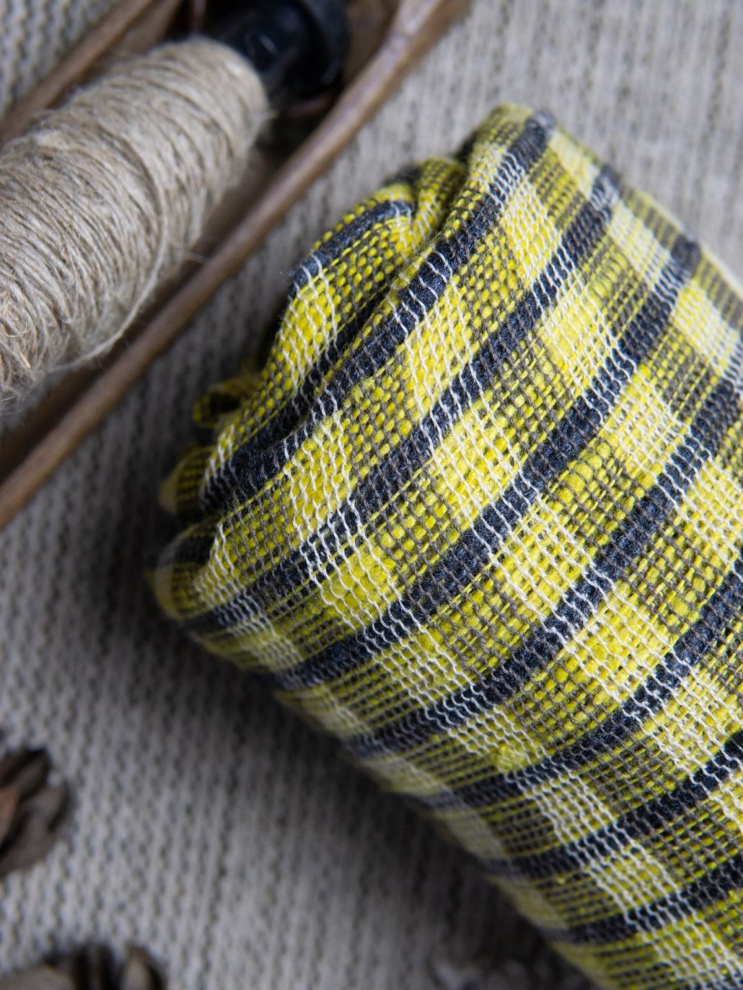 Thigh reeled katia silk and hand spun cotton woven in fishnet weave.