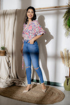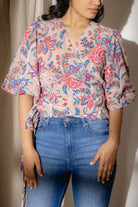 Nisha is a charming blend of femininity and versatility that will elevate your wardrobe to new heights. This elegant top features puffed sleeves and a side tie detail, creating a flattering silhouette that effortlessly captures attention. Length: 21"