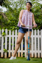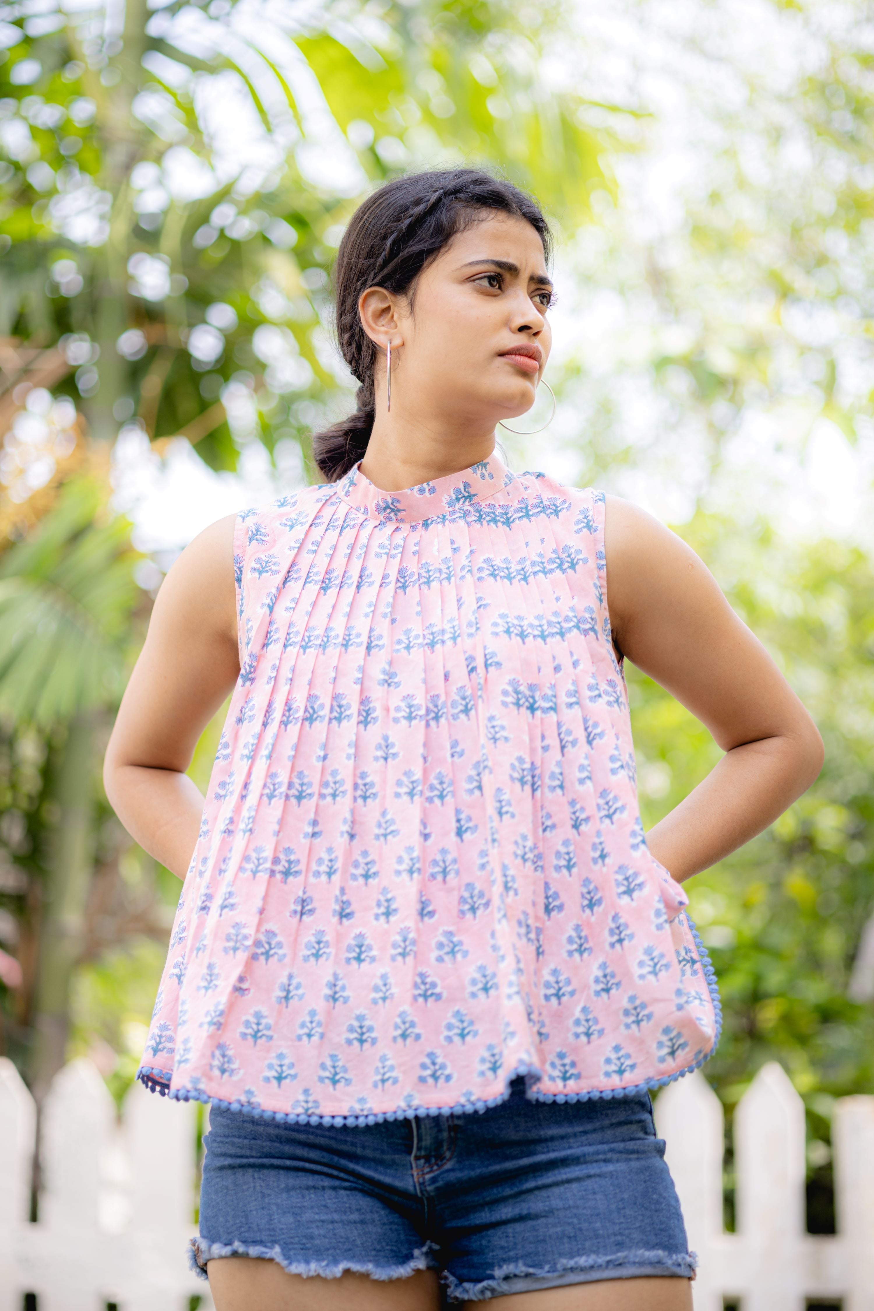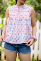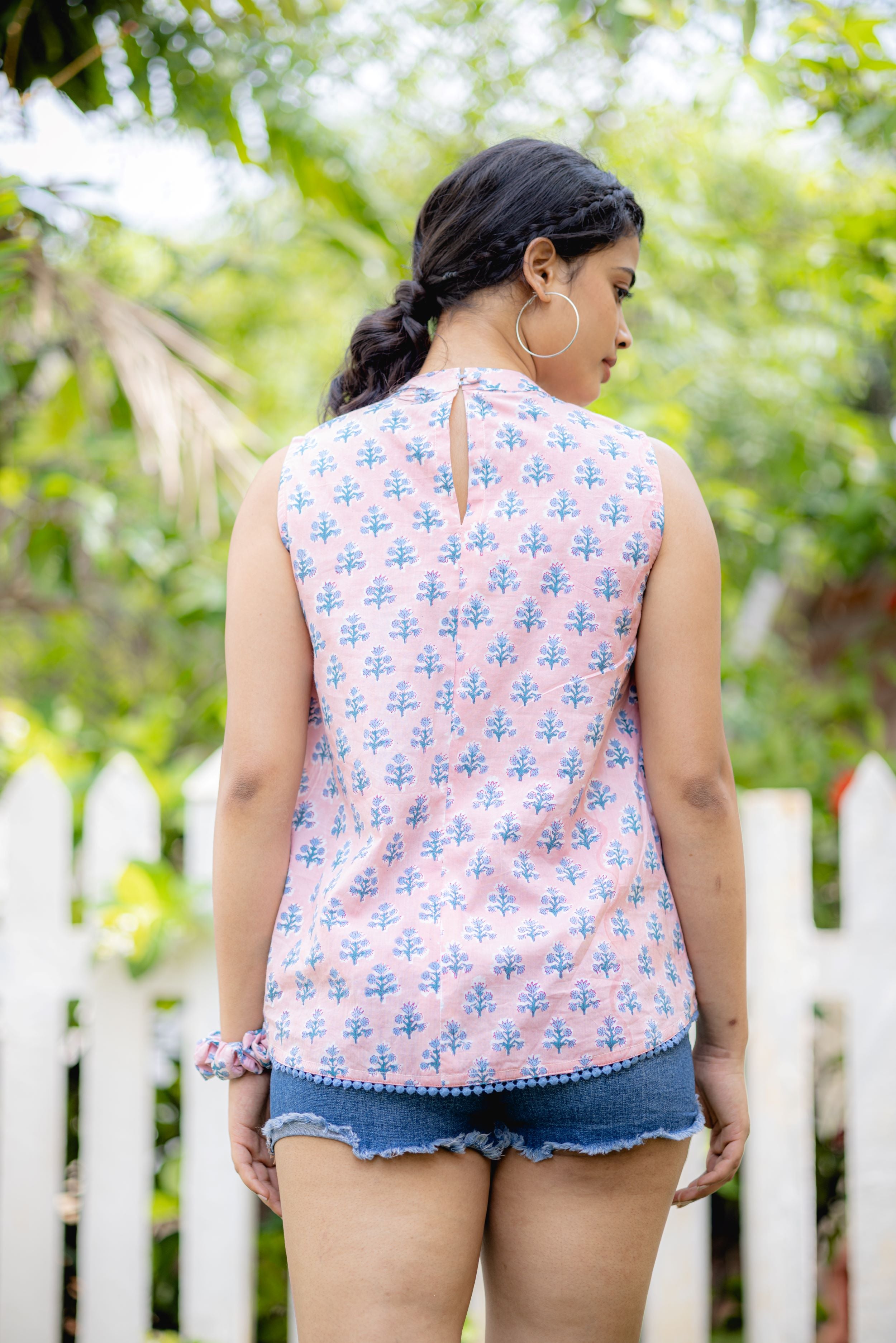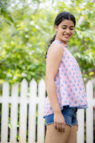 Introducing our Petal Perfection Handblock Print Casual High-Low Patterned Top, a delightful blend of elegance and comfort that brings a touch of charm to your everyday style. Let the soothing pink hue and intricate pattern bloom like florals, with contranst lace detailing make a fashion statement that is as unique as you are. Fully Lined in with Mul Cotton. Length: 24"