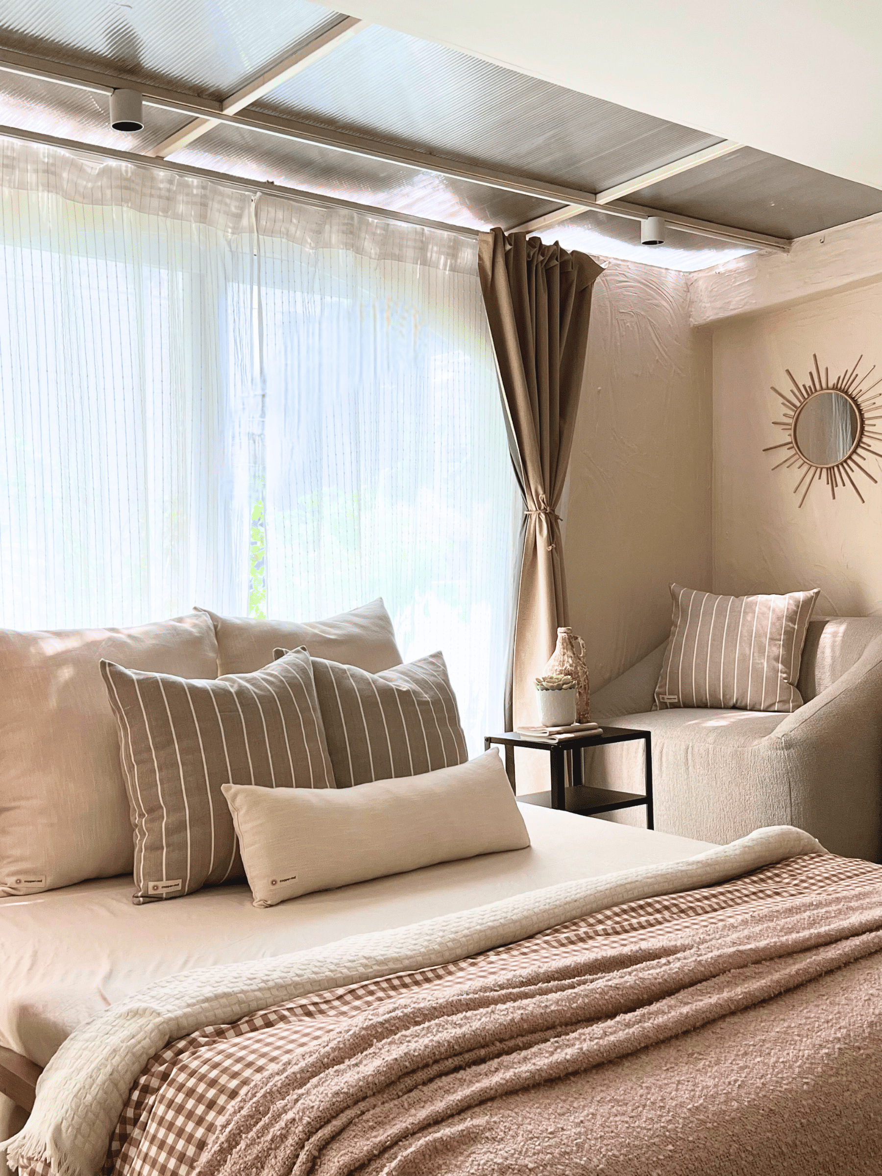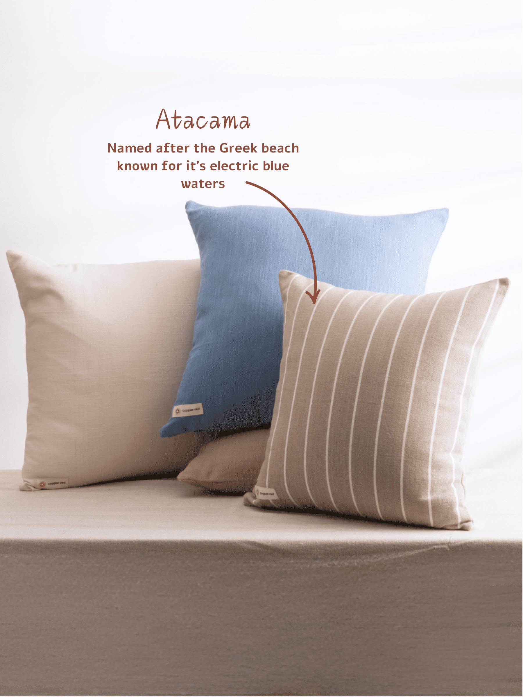 Inspired by Chile’s Atacama Desert, this cotton cushion cover features a warm burnt sienna base with white stripes, capturing the sunbaked hues of desert landscapes. Designed for modern, boho, and southwestern interiors, it adds warmth and rustic charm.