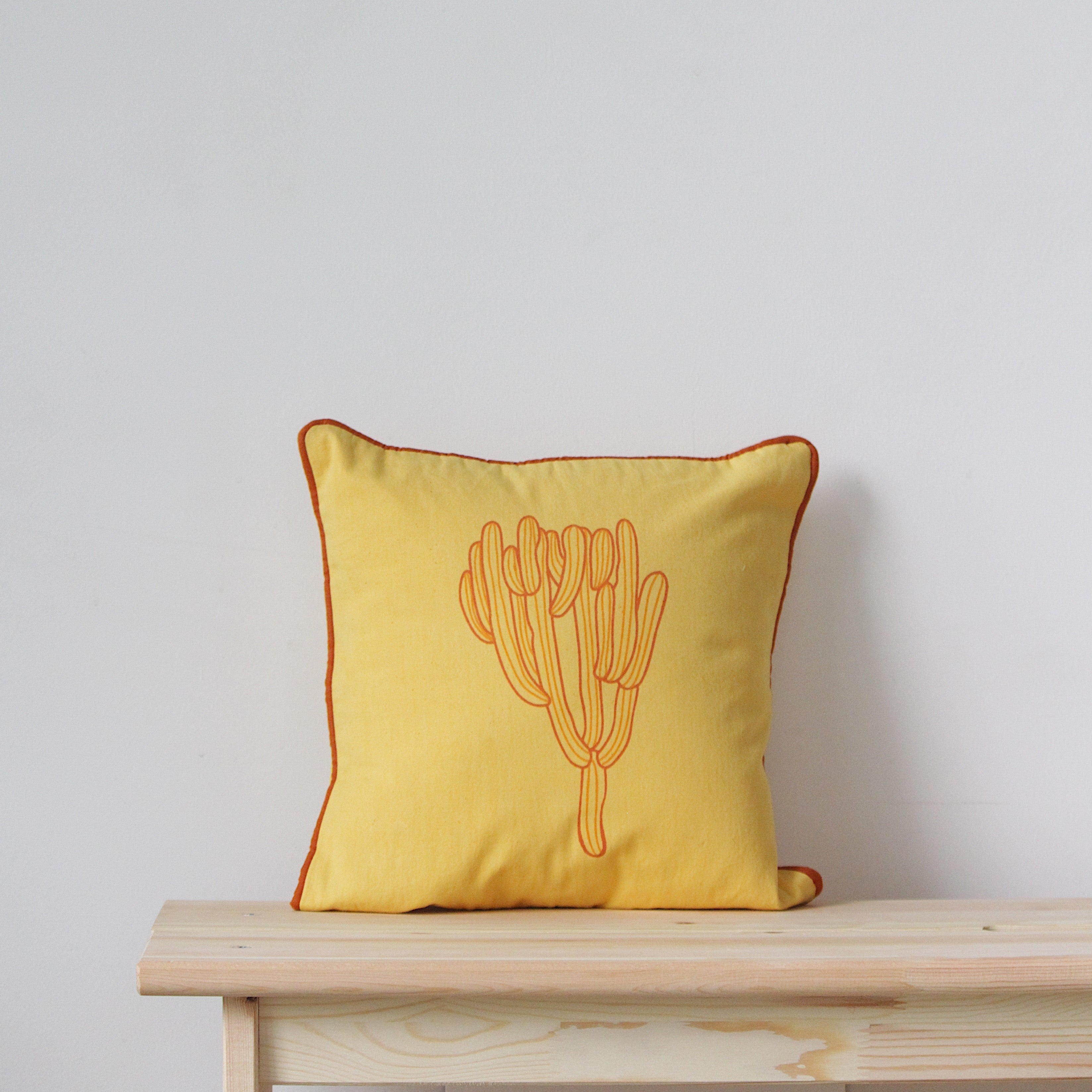 The Habitat cushion covers are hand screen printed on a hand dyed cotton fabric. We recommend dry cleaning of your cushions for best care results. Please note, owing to the nature of the craft, slight variations in color may occur.