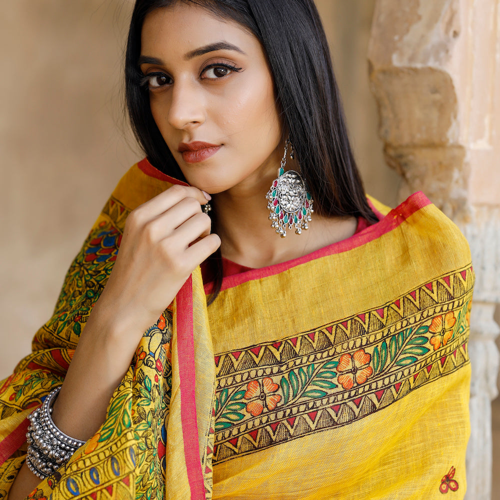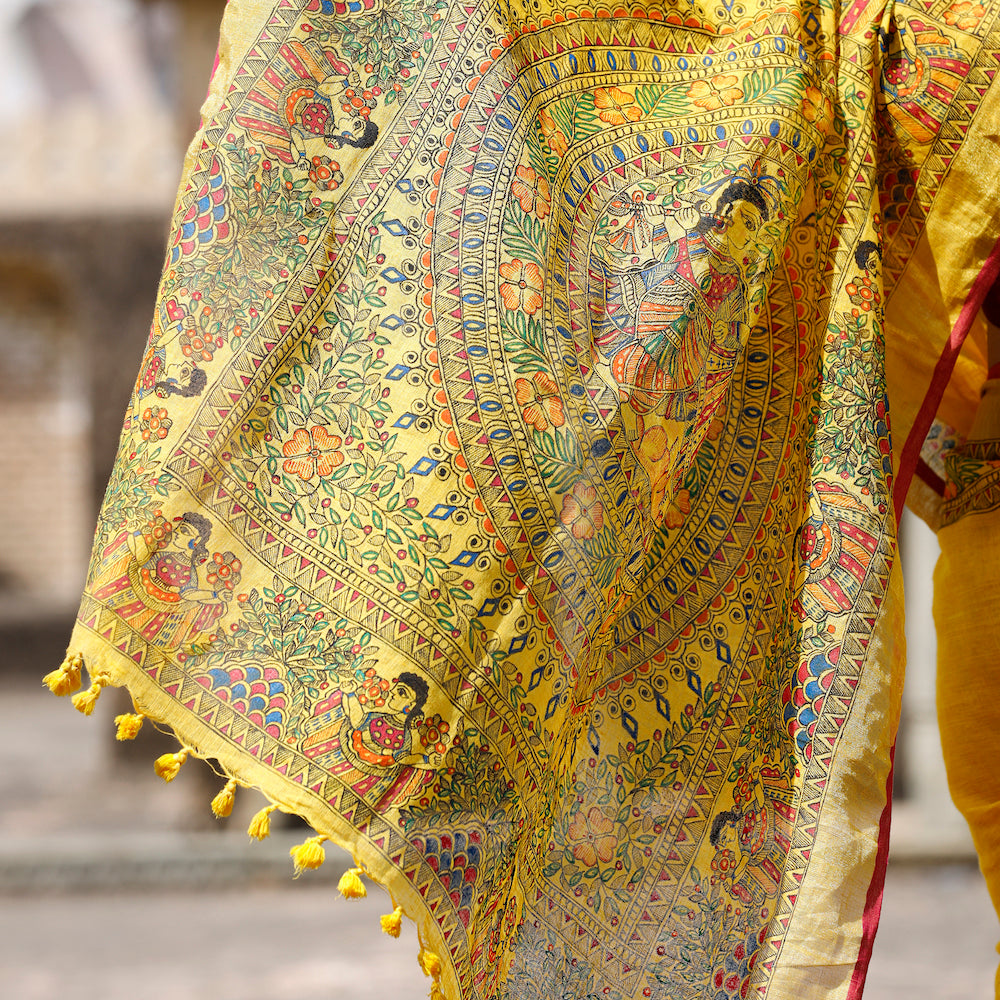 Madhubani painting is a famous art that originated in the Mithila region of Bihar (India). Madhubani hand-painted art is considered to be as old as the era in which Ramayana was set. It is said that inhabitants of the Mithila region painted their homes and streets with Madhubani art. Madhubani paintings were done to celebrate the wedding of Lord Ram and Sita.