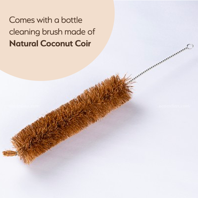 Sarveda Copper Water Bottle with Cleaning Brush | Pink Noble Thoughts | 1 Litre