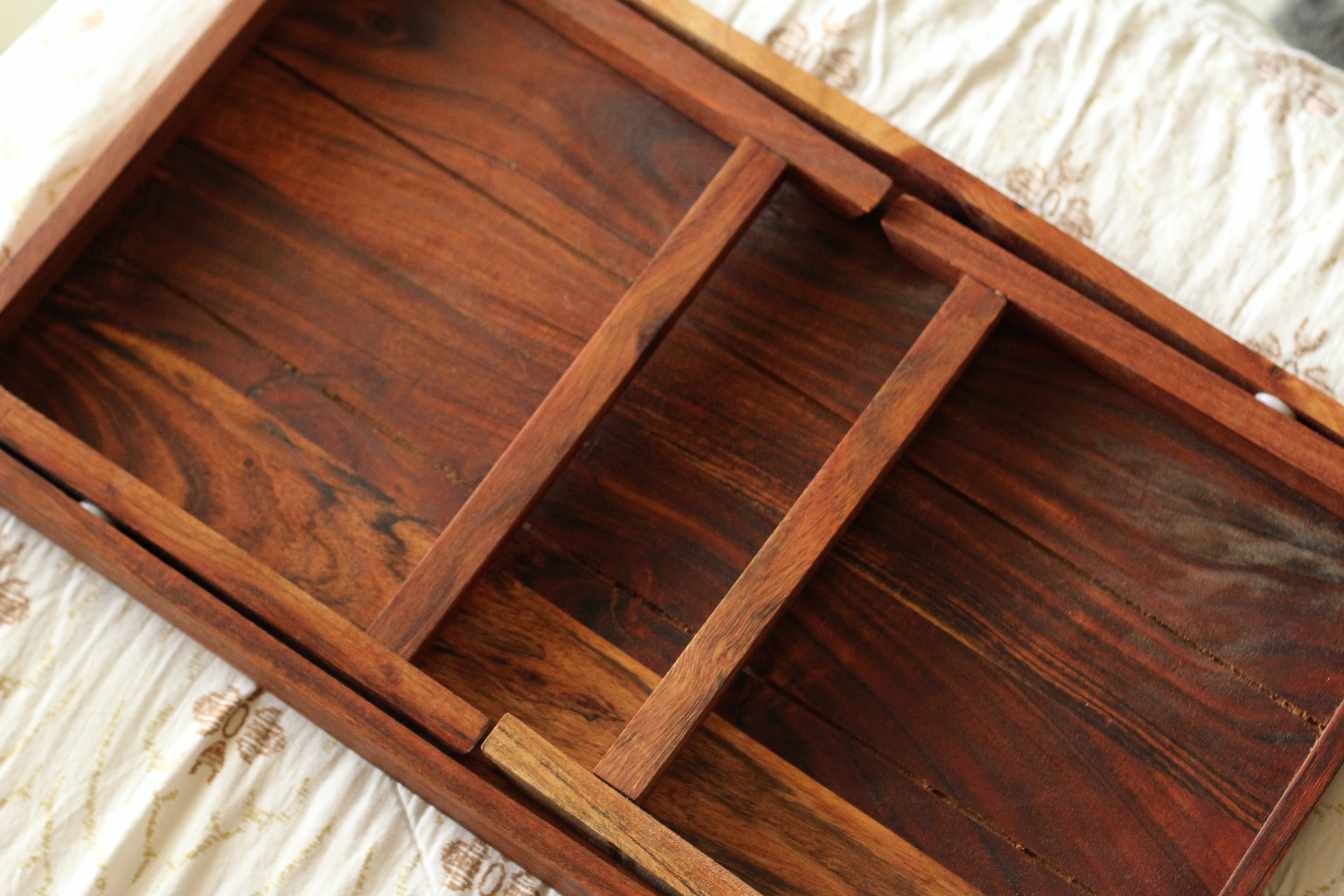 Crimson Bloom Handcrafted Wooden Tray with Floral Design