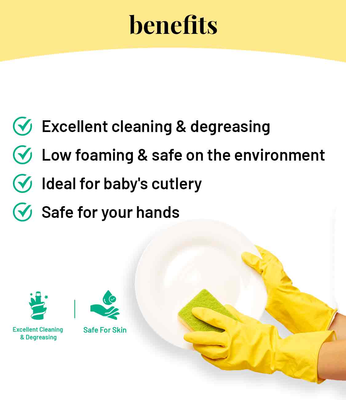 A highly concentrated formulation of powerful plant-based ingredients makes this dish-washing gel as tough on grease as it is gentle and safe on your hands. That means, squeaky clean dishes without the side effects of itchy hands, flaky skin or chemical irritation.