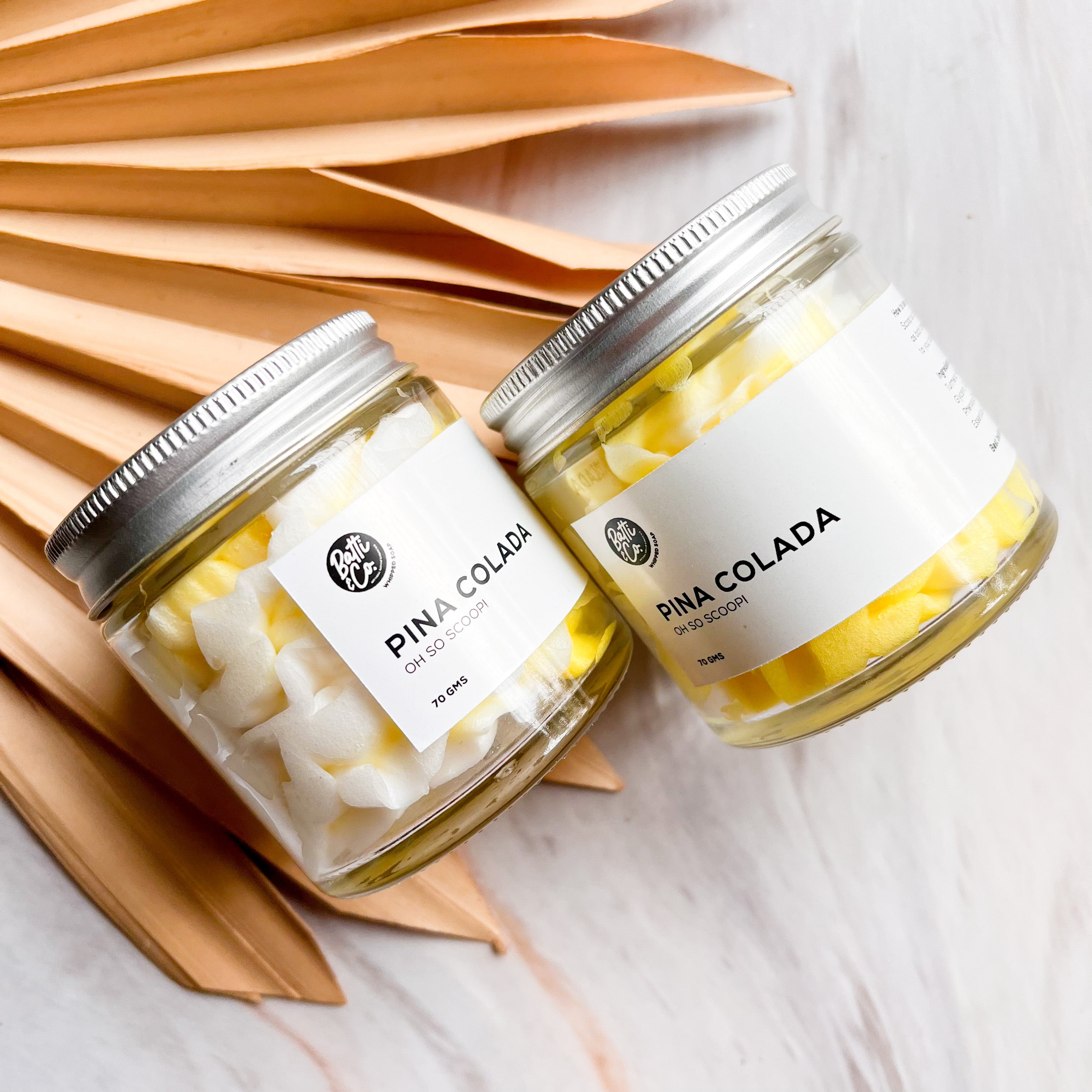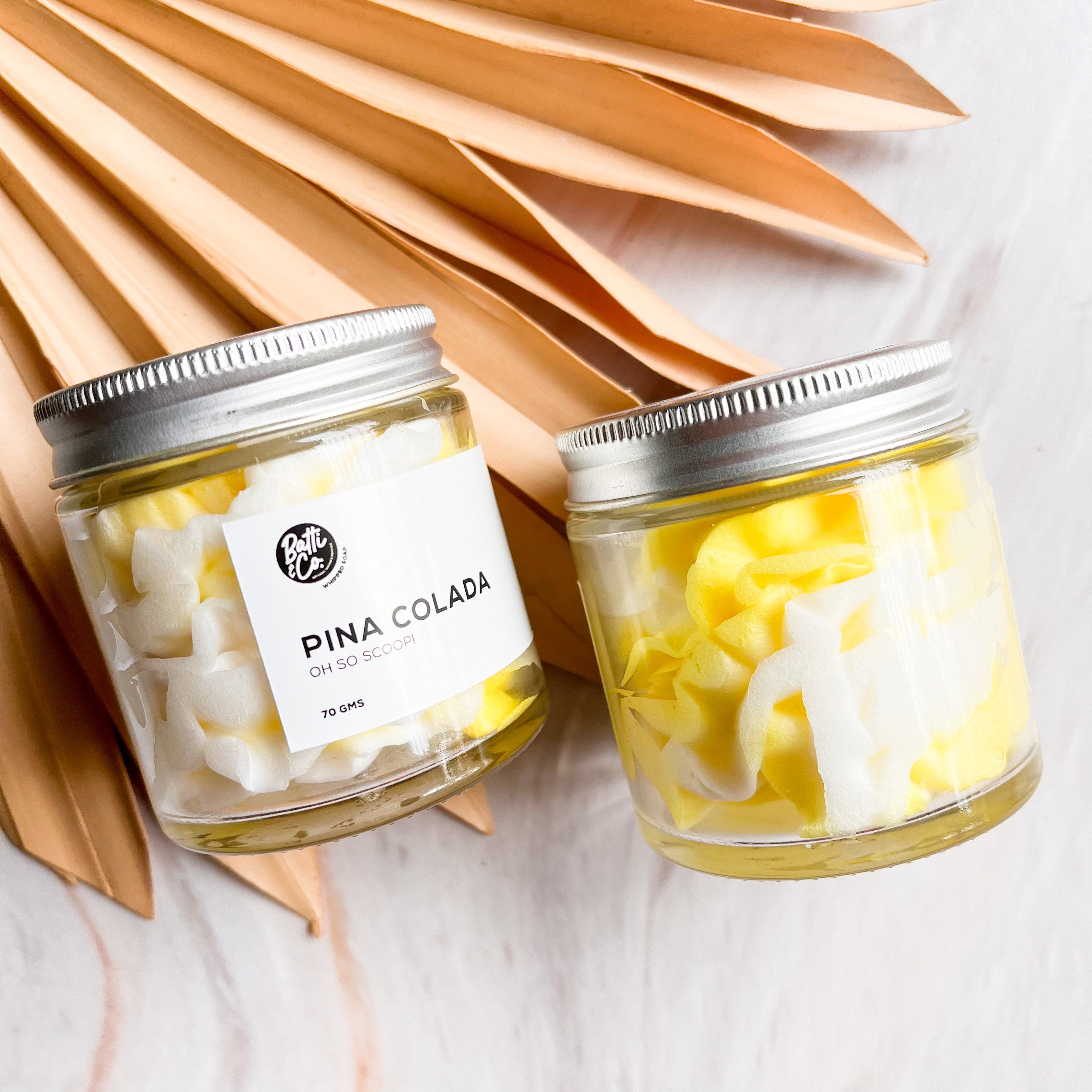 Pina Colada whipped soap is a fun way to ditch the shower gels. Inspired by the natural ingredients like Turmeric and Shea Butter, this whipped soap literally has a texture like whipped cream - soft, fluffy and rich. It is pure creamy luxury, in a jar.