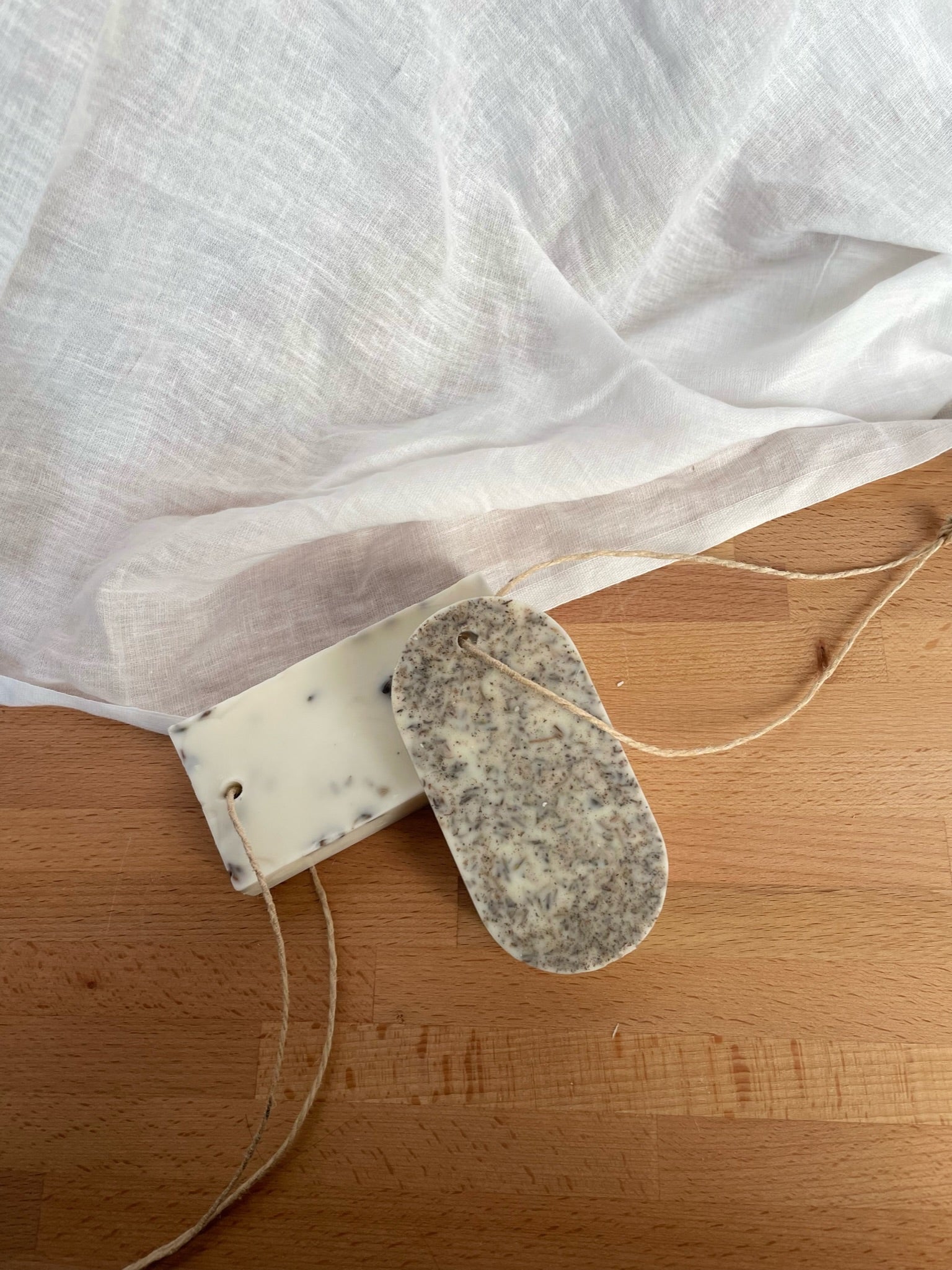Infuse your cupboards, cabinets and bath rooms with our scented wax tablets that are made with vegan soy wax and crushed lavender. This product comes as a set of 2 with each wax tablet measuring 6 inches in length and 3 inches in width.