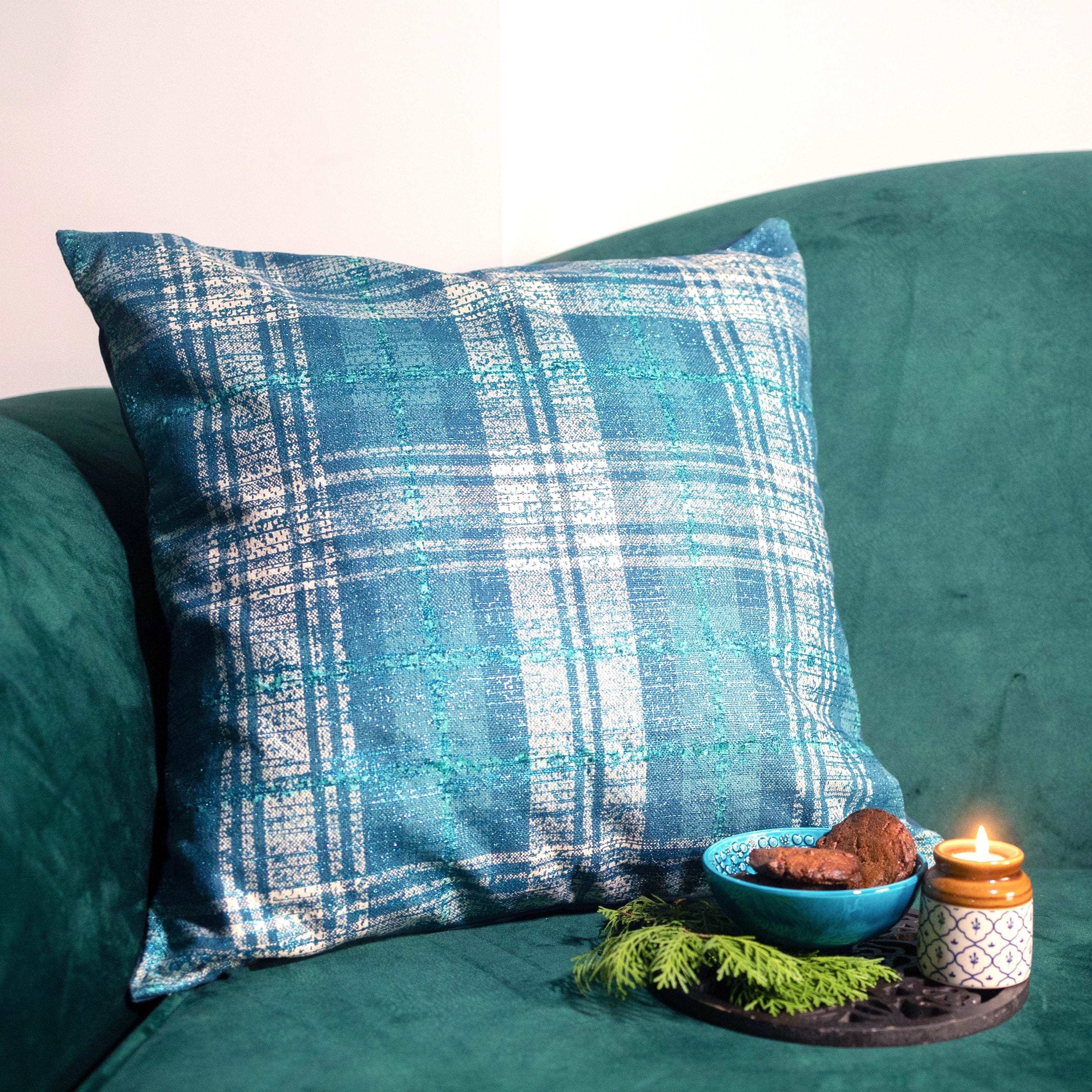 Thinking about giving your living room couch a cozy yet casual look? Our Metallic Checks Cushion Cover will be the perfect companion.