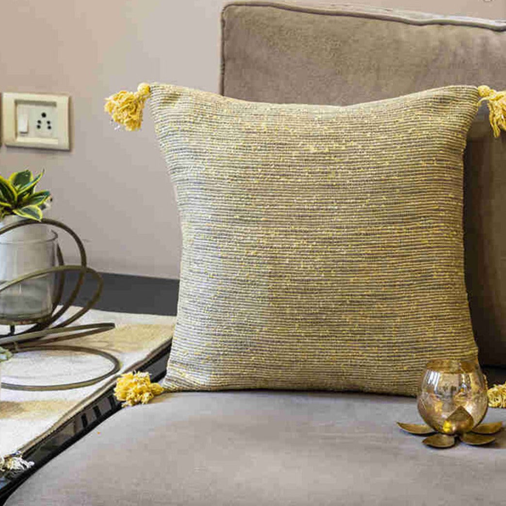 Let glittering lights mesmerize you with our Shimmer handwoven Cushion Cover. This rib cushion cover creates a bold impression in warm tones of yellow, lacing your home with liveliness.