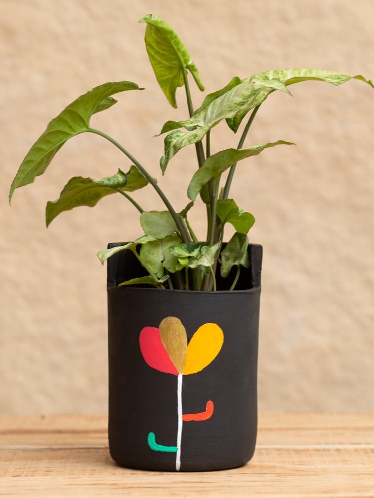 Size - 9.5x11x13.5 cm Craft - Handmade Terracotta Planter Colour - Black Net Qty - 1 unit