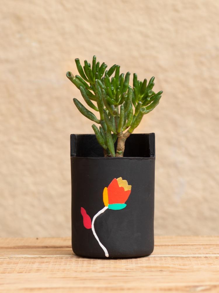 Size - 13x11x16 cm Craft - Handmade Terracotta Planter Colour - Black Net Qty - 1 unit