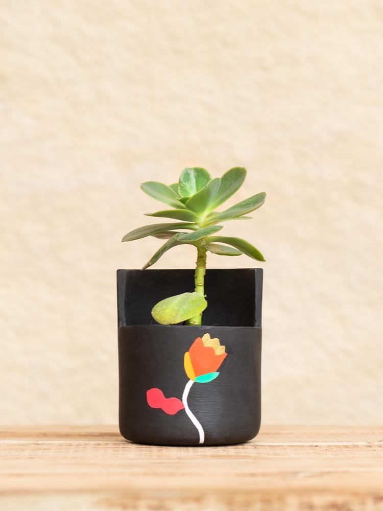 Size - 9.5x11x13.5 cm Craft - Handmade Terracotta Planter Colour - Black Net Qty - 1 unit