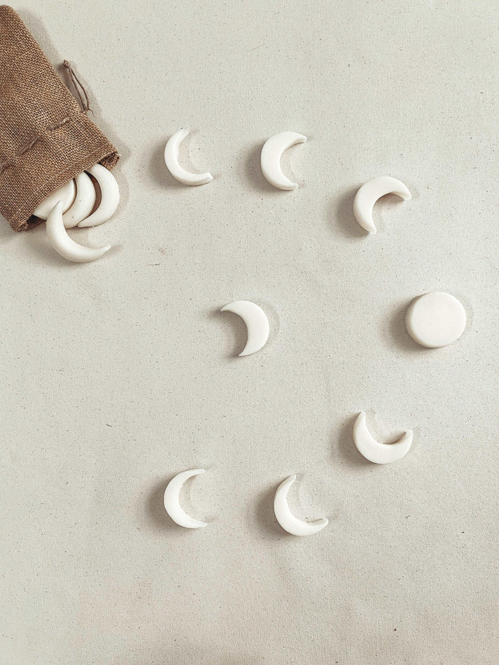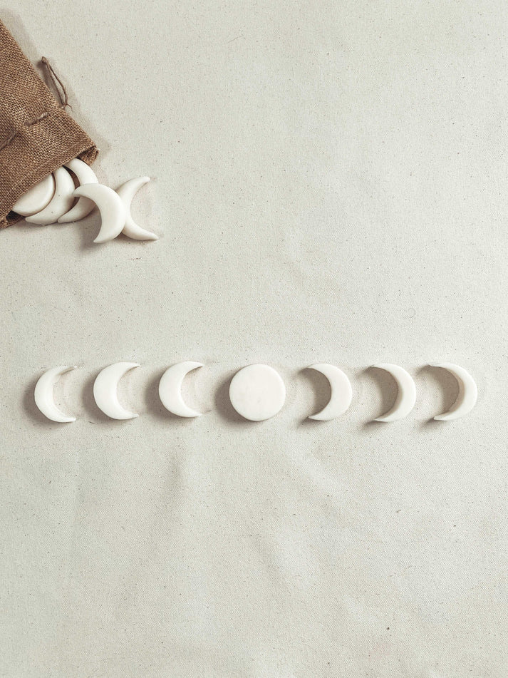 Pack comes with 12 moon phase wax melts Wax type - 100% Soy WAX Fragrance - -Nemophily : Indulge into your fondness of forest & woods with blends of organic Khas, mitti & wood in a beautifully hand poured moon phase wax melts -Oishi : With the sweetness of vanilla paired with fruity forest nuance, it captures a delicious fragrance that makes you feel home -Hygge : Notes of fresh peach is the quintessential summer scents that sure is to lift your spirits with having an added twist to embody the playful element of caramel. The warm and sun-filled season calls for mood-boosting fragrances that will capture the essence of an endless summer. Usage: Add 1-2 Moon Melts to the top of the oil burner. The wax can be re melted until its no longer fragrant You can use difference fragrances together to create an entirely new aroma.