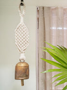 One O Eight Knots Ivory White Classic Wide Hand-Knotted Wind Chime with Metal Bell