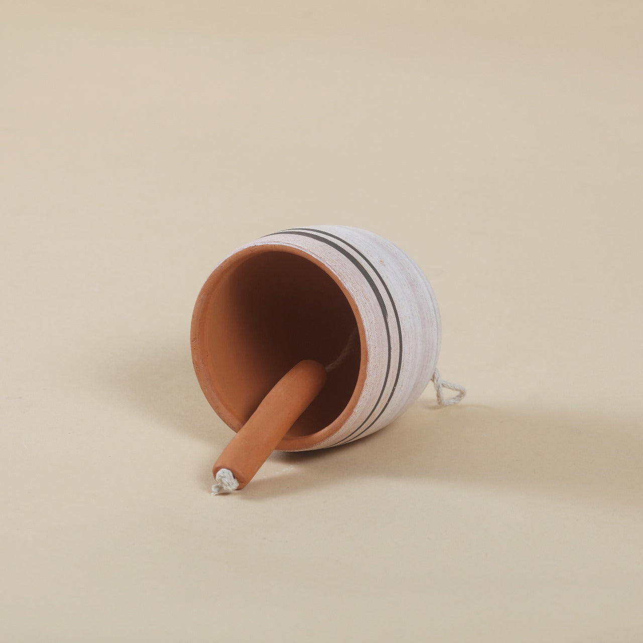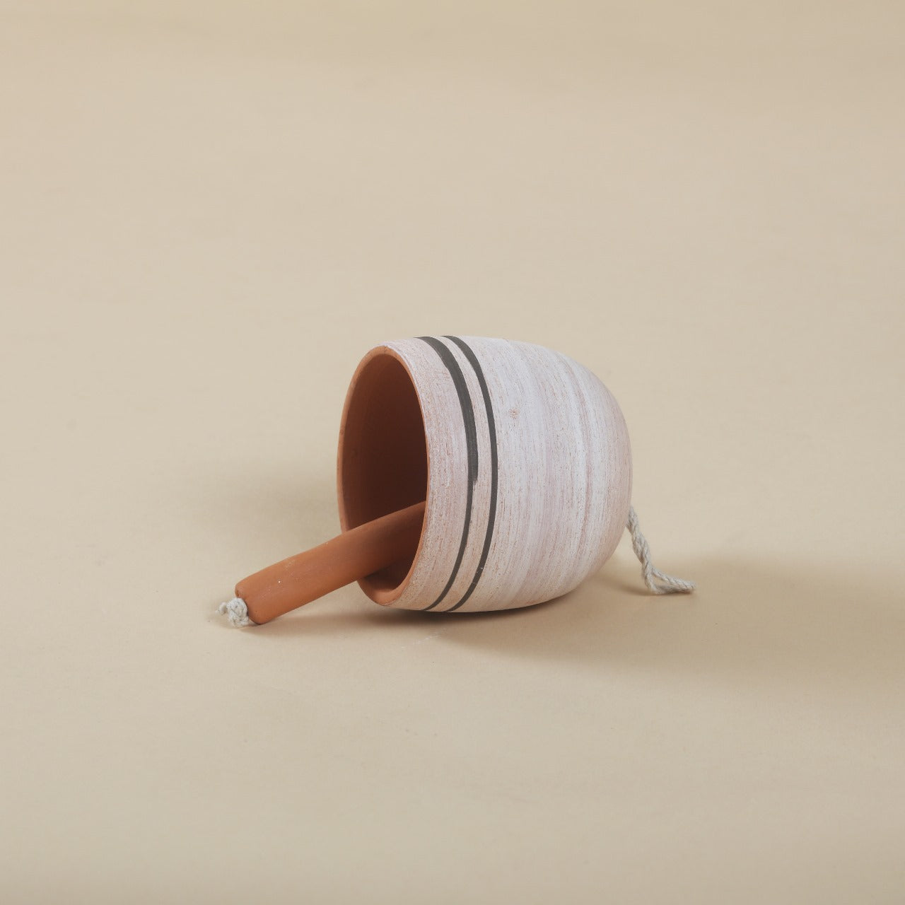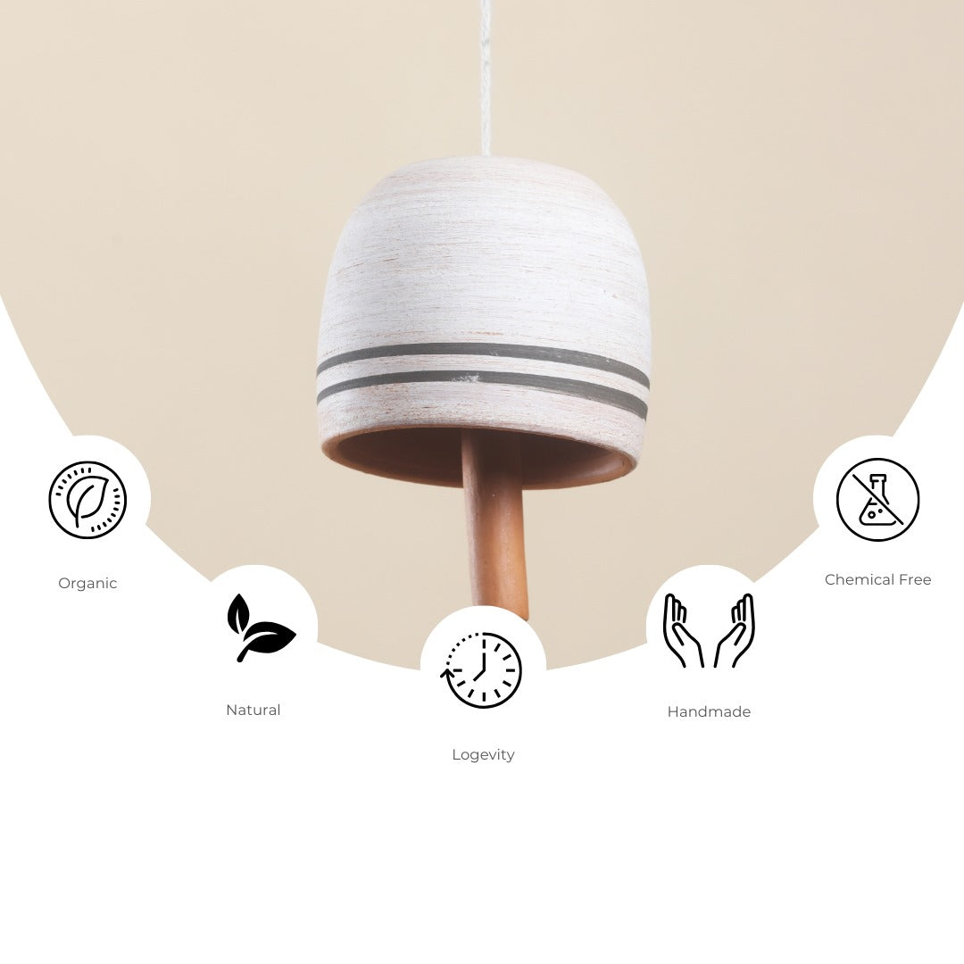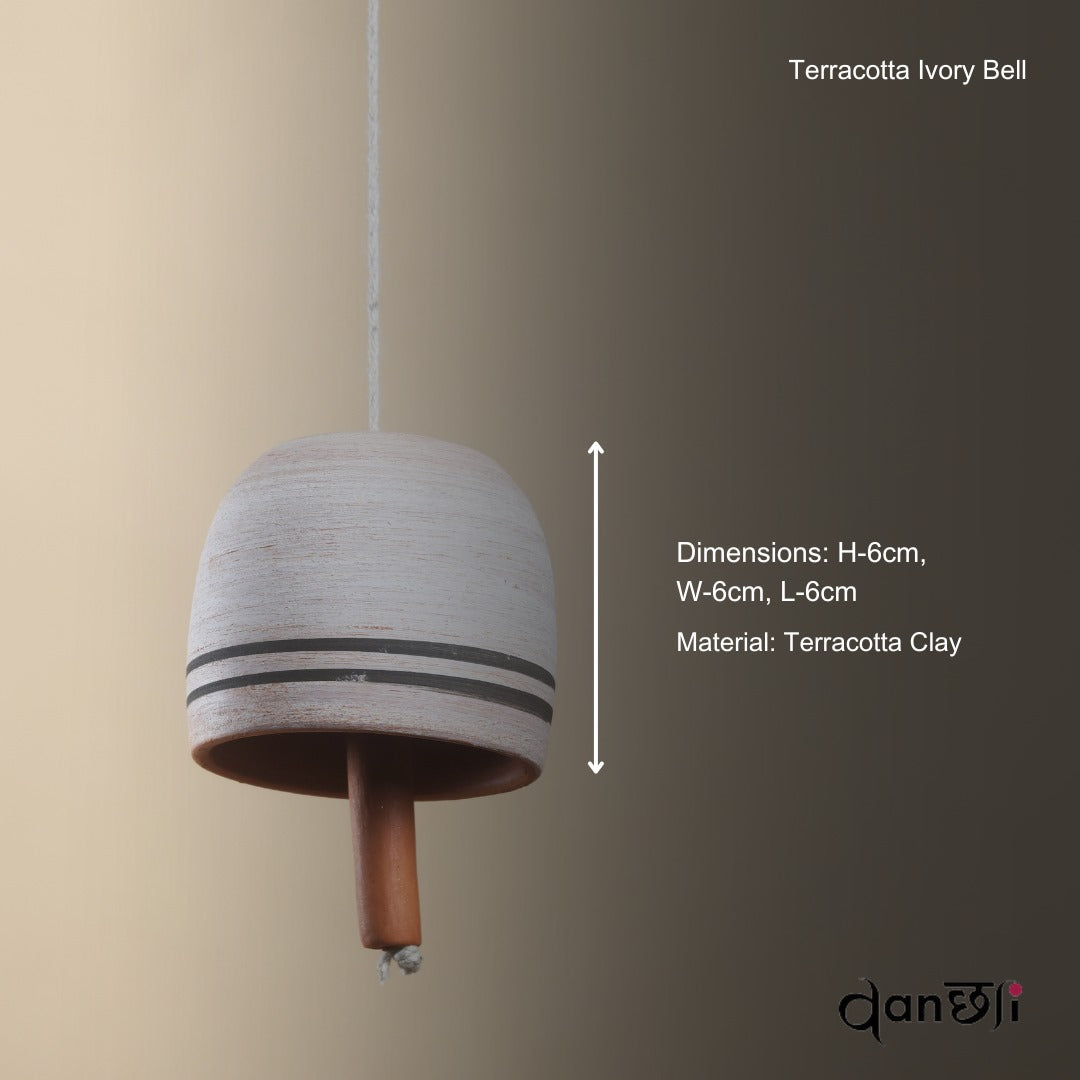 Vanchai Ivory Terracotta Bell with clay clapper, Handmade White Clay Bell