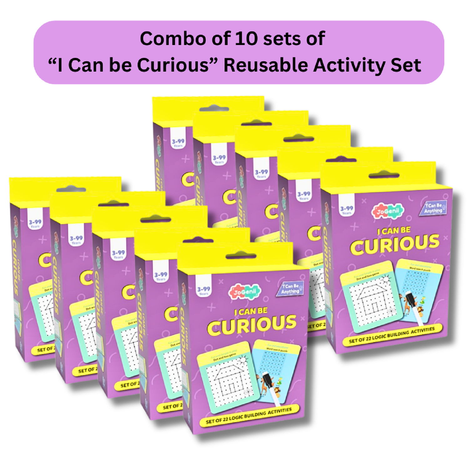 This is a combo of 10 sets of the " I Can Be Curious" which makes it perfect for return gifting, bulk gifting and play dates.Spark curiosity and develop logical thinking with JoGenii's "I Can Be Curious" Mini DIY Kit! Tailored for inquisitive minds aged 3 to 99, this kit offers engaging activities that promote learning and fun, making it perfect for kids and adults alike.