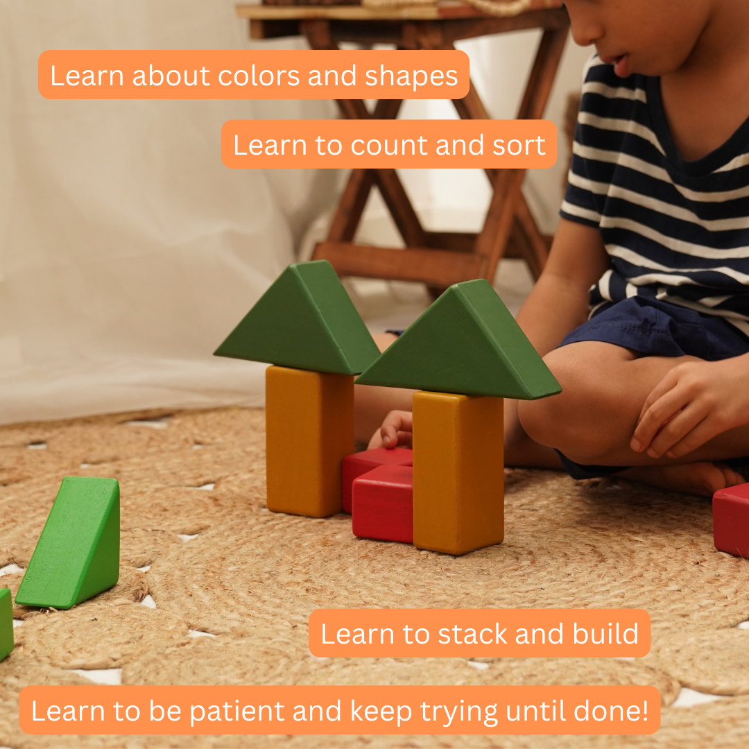 Introducing our set of 13 multicolored wooden toy blocks, crafted to inspire creativity and problem-solving for little hands aged 3 years and up. These sturdy, natural toys are perfect for sorting, stacking, and building everything from trees to bridges. Each play session offers a new adventure, sparking your child's imagination.