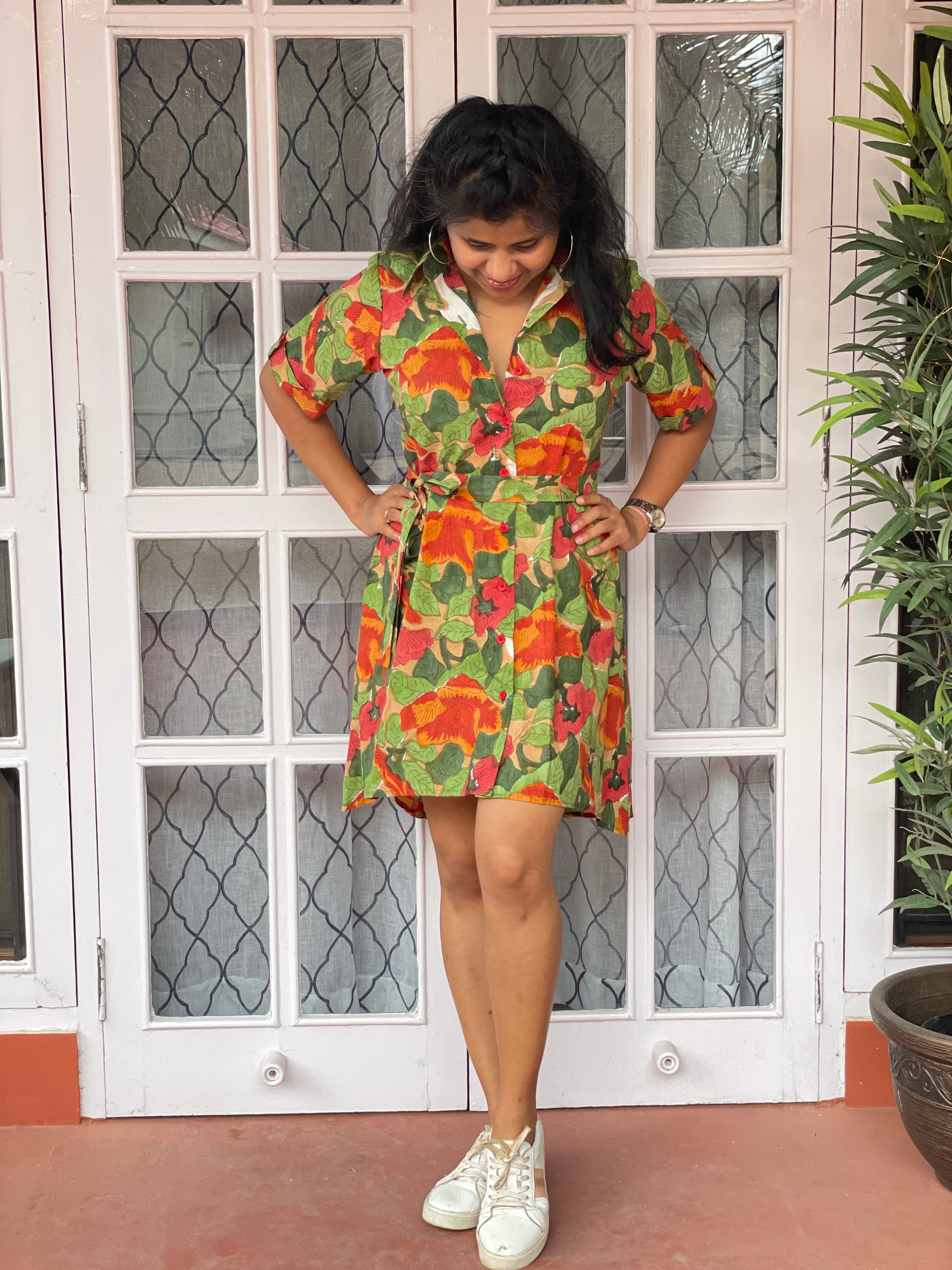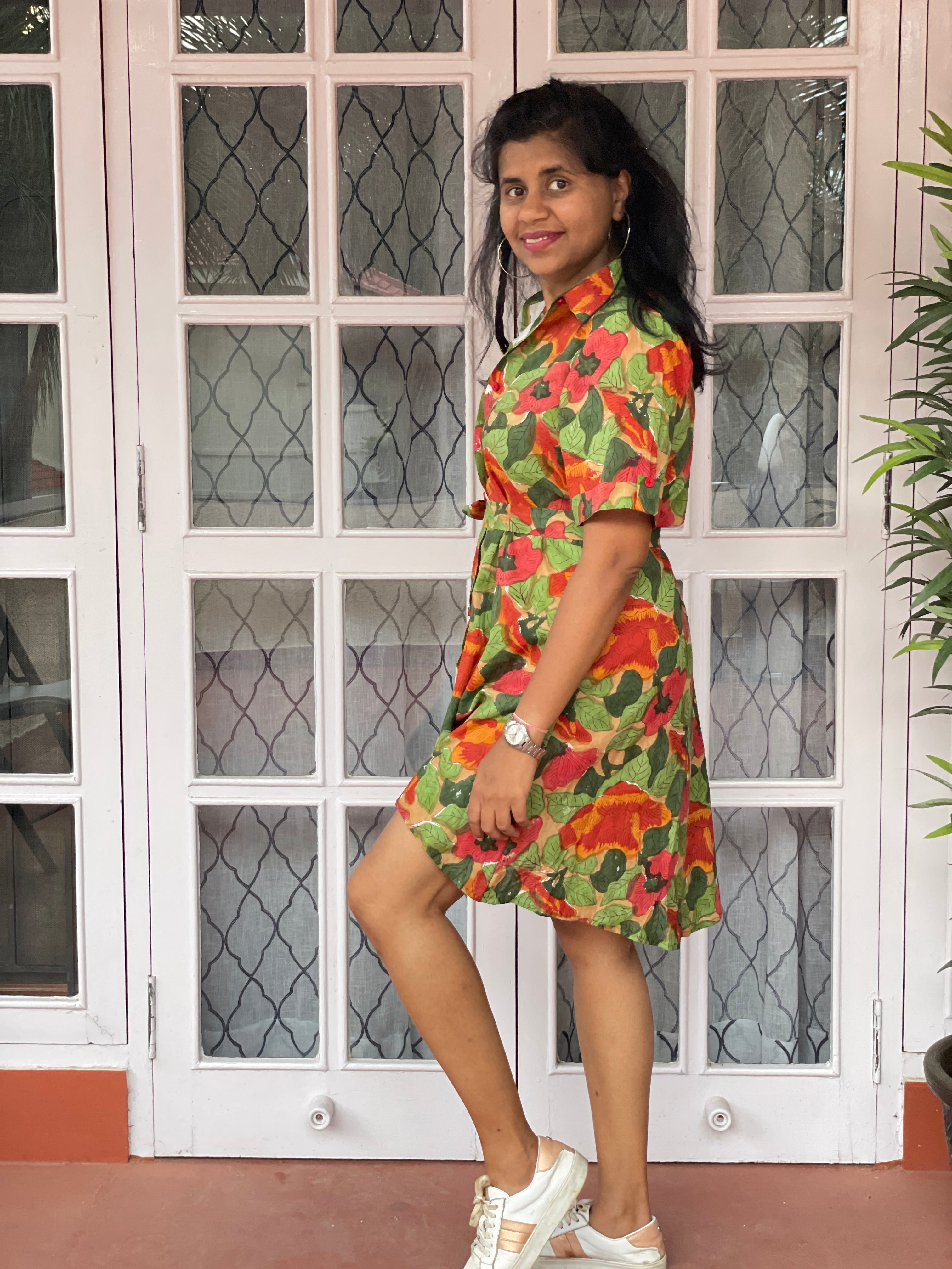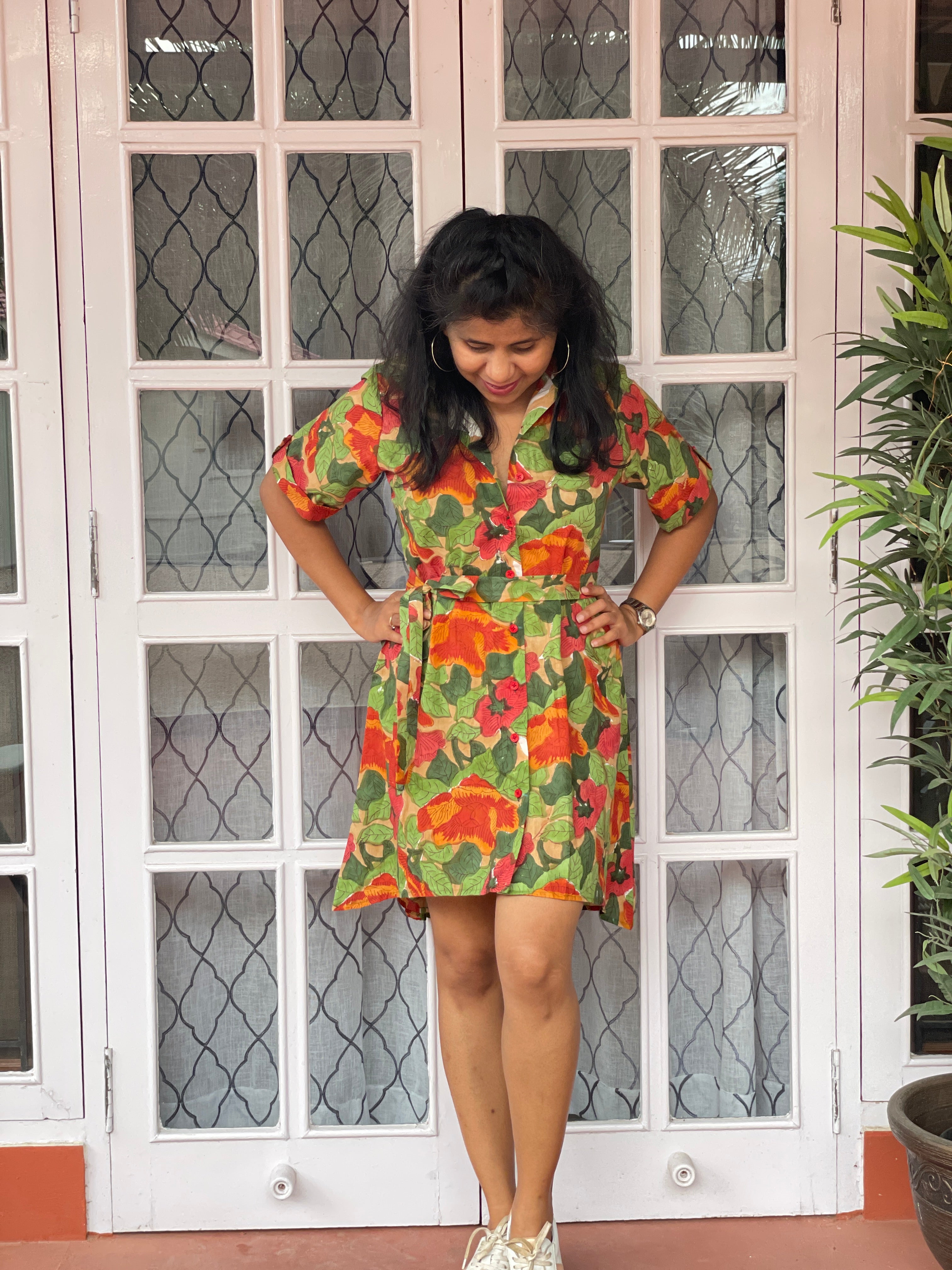Bloom All Day' High-Low Curved Handblock Print Shirt Dress.