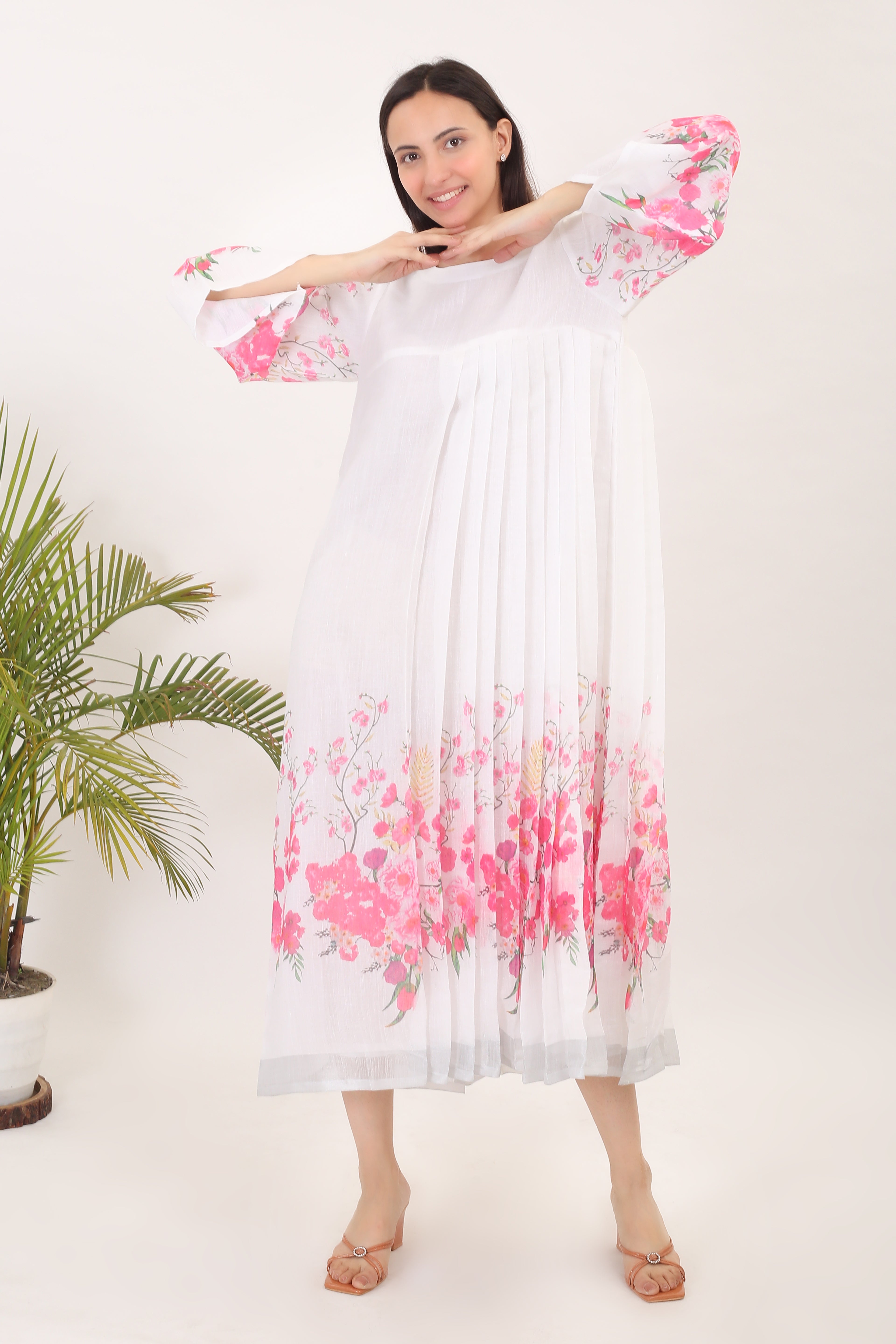 CHINESE BLOSSOMS: Cotton linen printed summer women dress