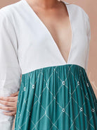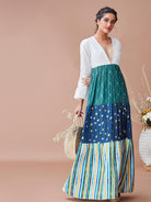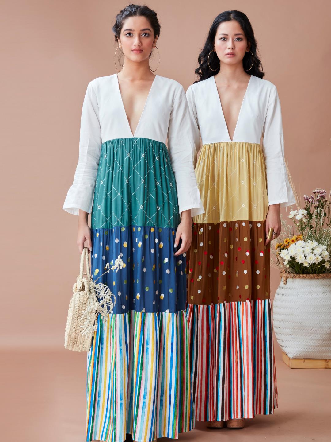 Taking inspiration from blossoming flora, the JUIEE tiered dress brings together craftsmanship and modern digital print. The embroidery captures the delicate jasmine flowers with the dancing speckles of sunshine in the third panel. The style is complete with a 3/4th sleeve and has a comfortable snug torso.