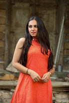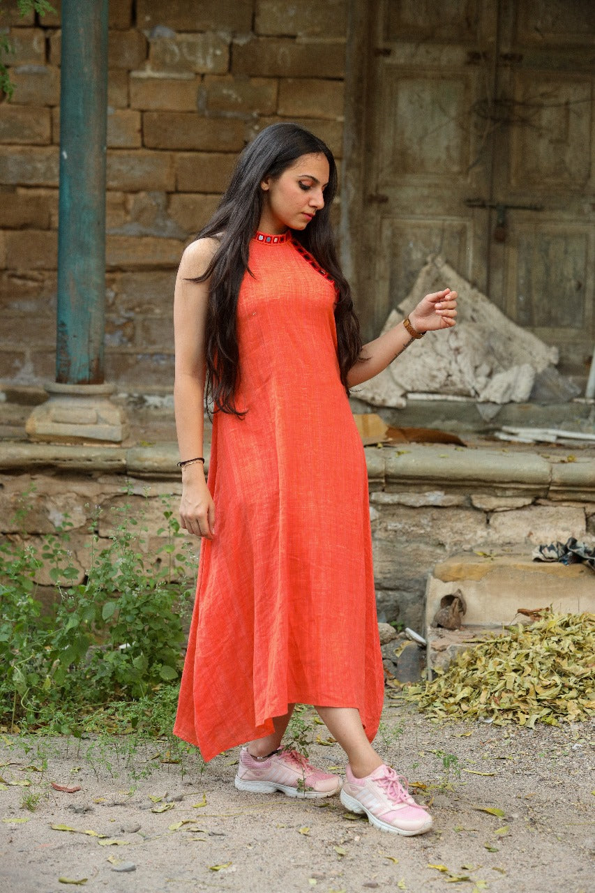 Our Khadi Yarn Dyed Tunic is a gorgeous tunic that is hand embroidered and features a gorgeous halter neck. The cotton is of the highest quality and it has been coloured with a khadi yarn dye technique that gives the garment an earthy feel that just feels so authentic!