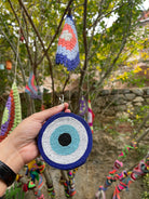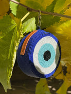 The Evil Eye Coin Purse is the perfect combination of sophisticated style and utilitarian utility. Crafted with artisan design, this handcrafted purse features the Greek inspired evil eye hand-embroidered with beads and a stylish handcrafted macrame belt that lends an air of luxury to any ensemble.