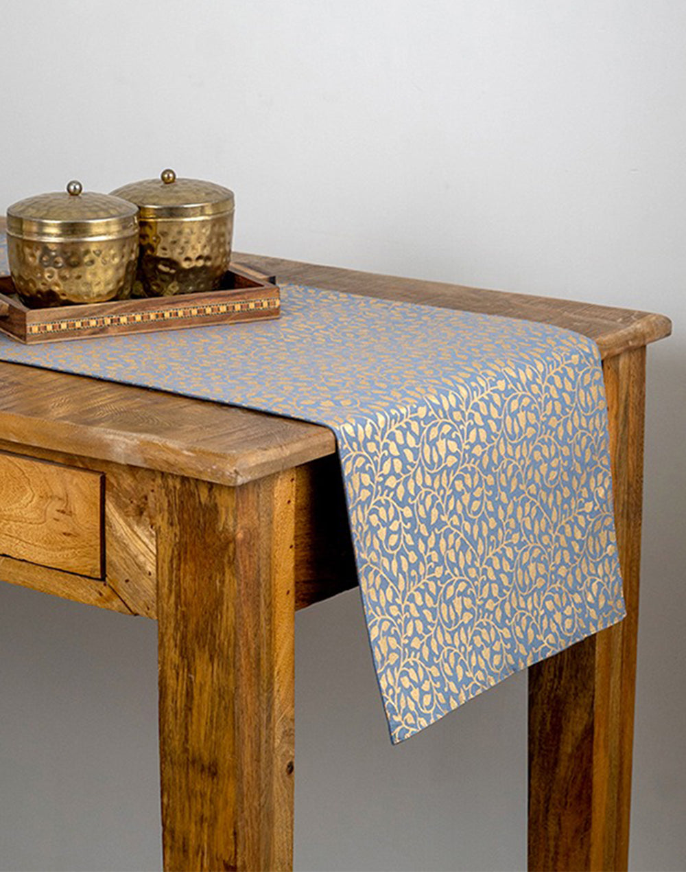 Beige Cotton Gold Leaf Printed 14x70 Inch Runner